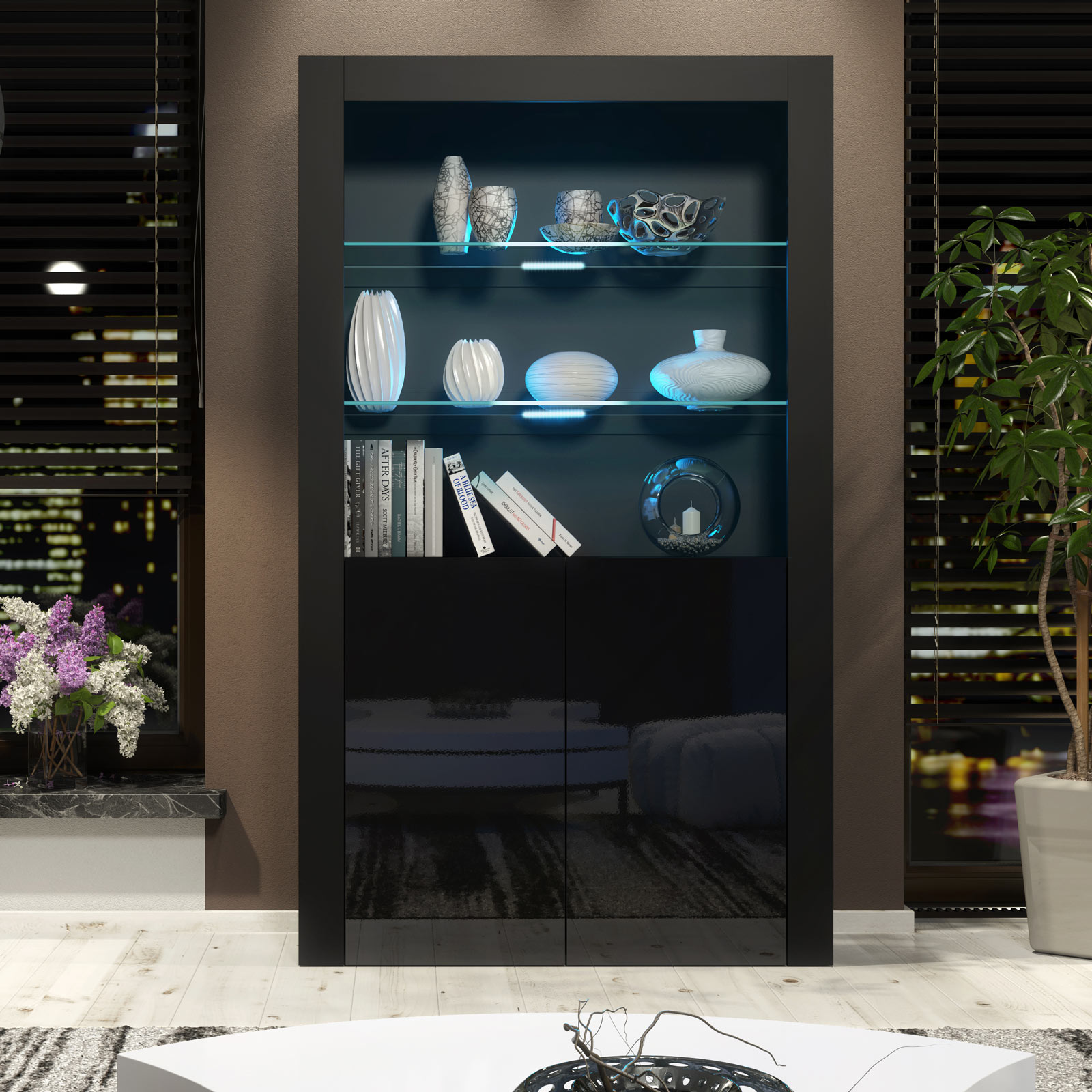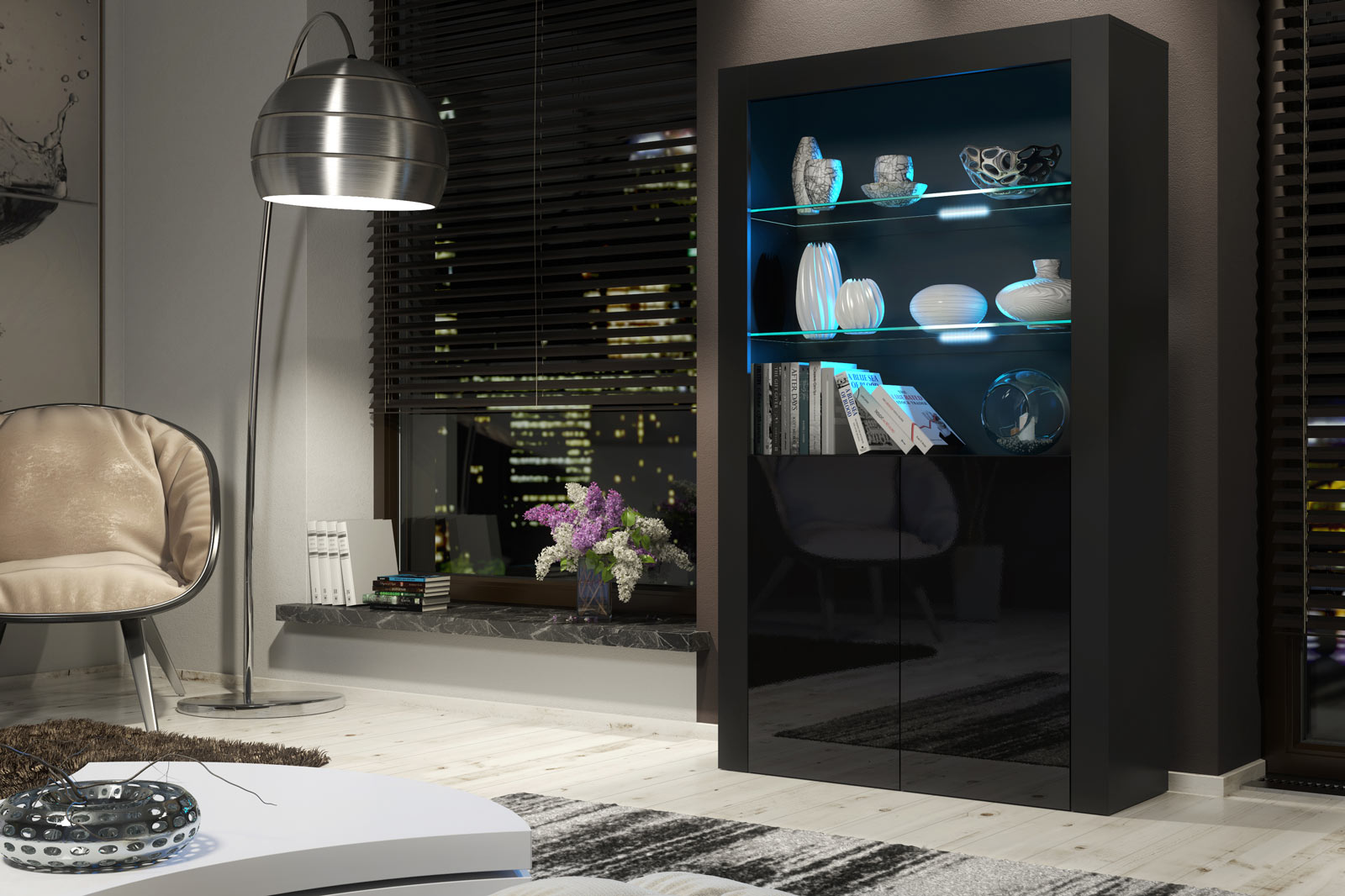 Create a bold, contemporary focal point with this 100cm Modern Display Cabinet in Black Matt & Black Gloss. Designed for modern interiors that embrace strong contrast and clean lines, this cabinet combines elegant display space with practical concealed storage.