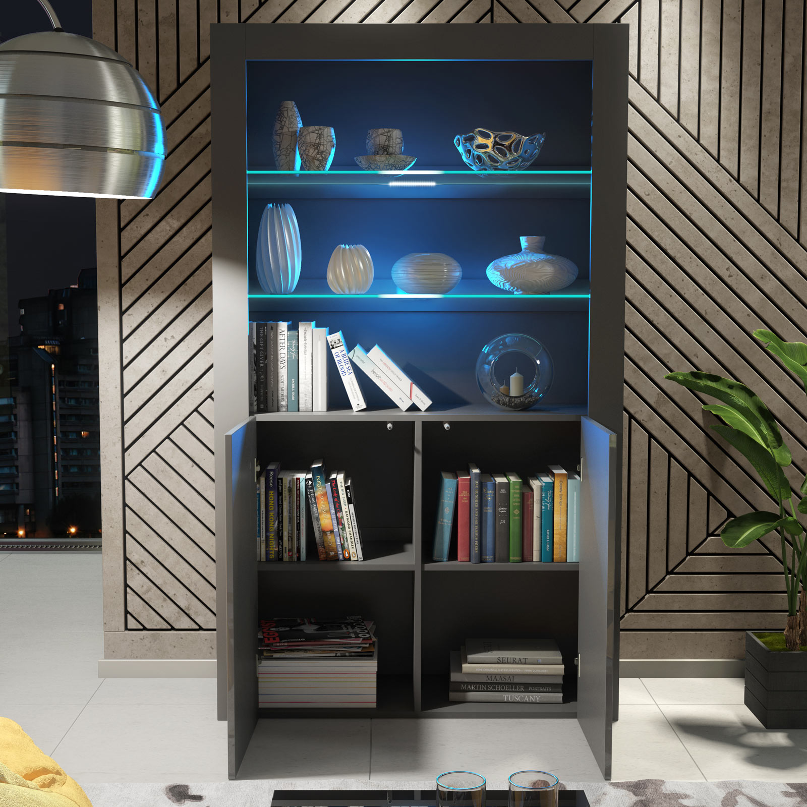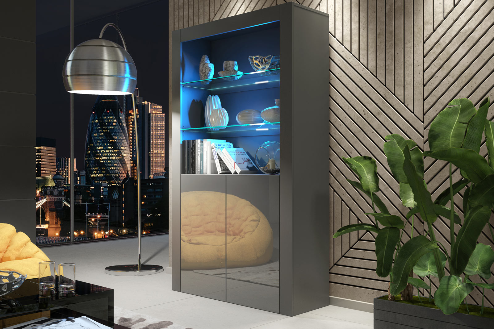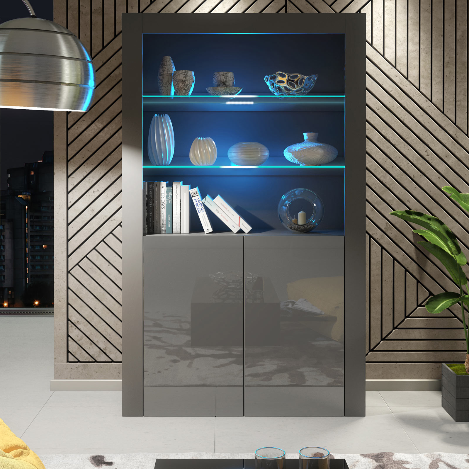 Create a sleek, contemporary focal point with this 100cm Modern Display Cabinet in Grey Matt & Grey Gloss. The soft matt grey body provides a clean, understated base, while the grey gloss doors add depth and a refined, modern finish.