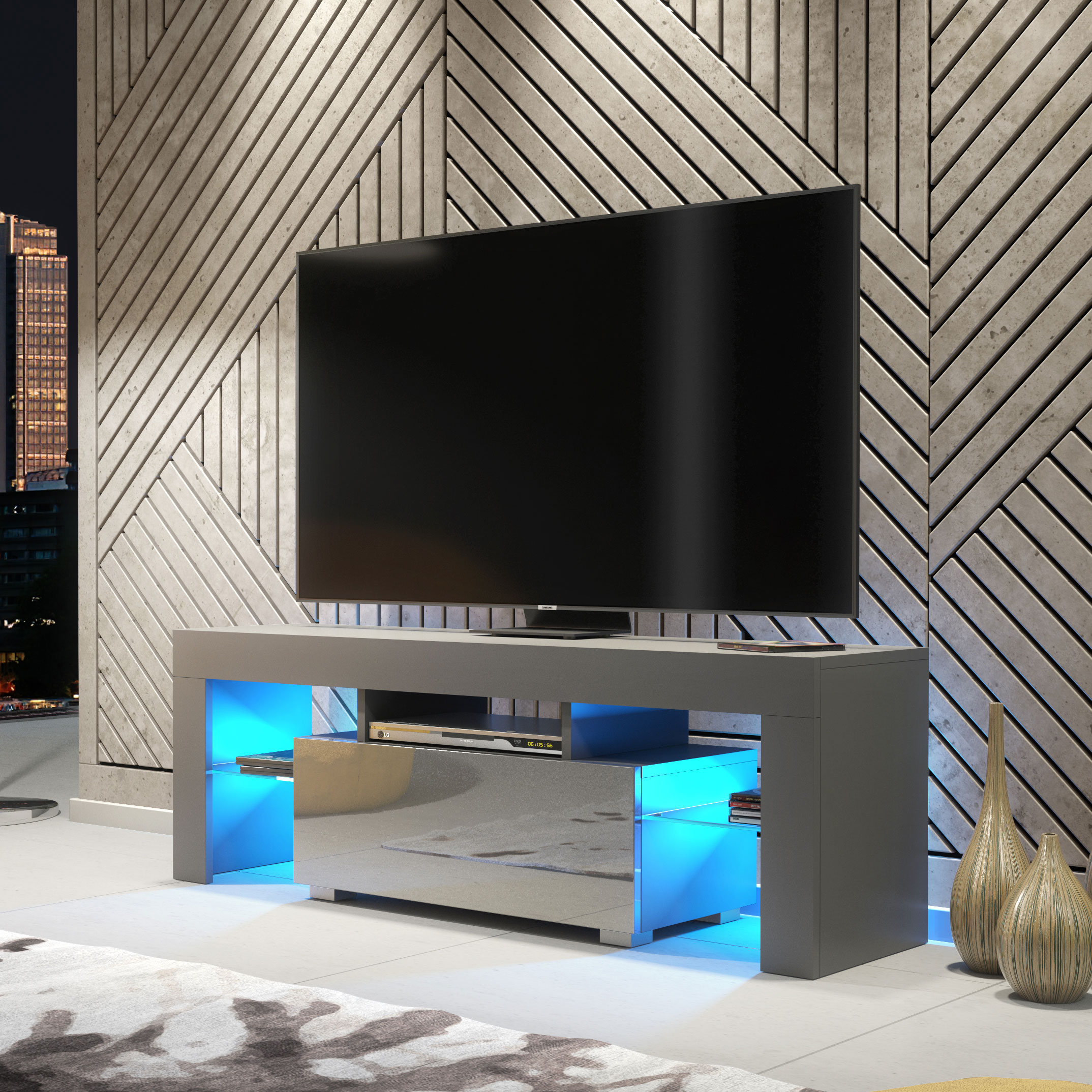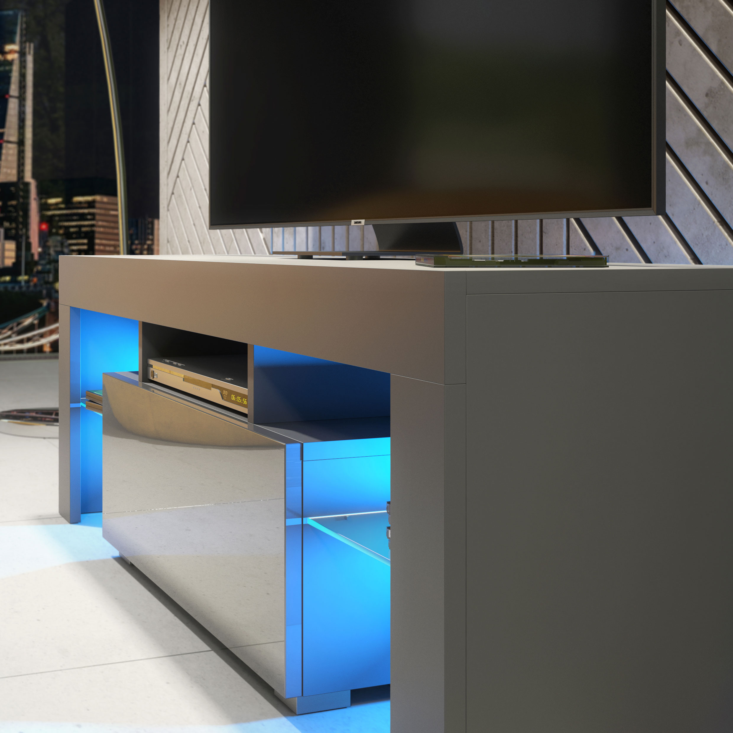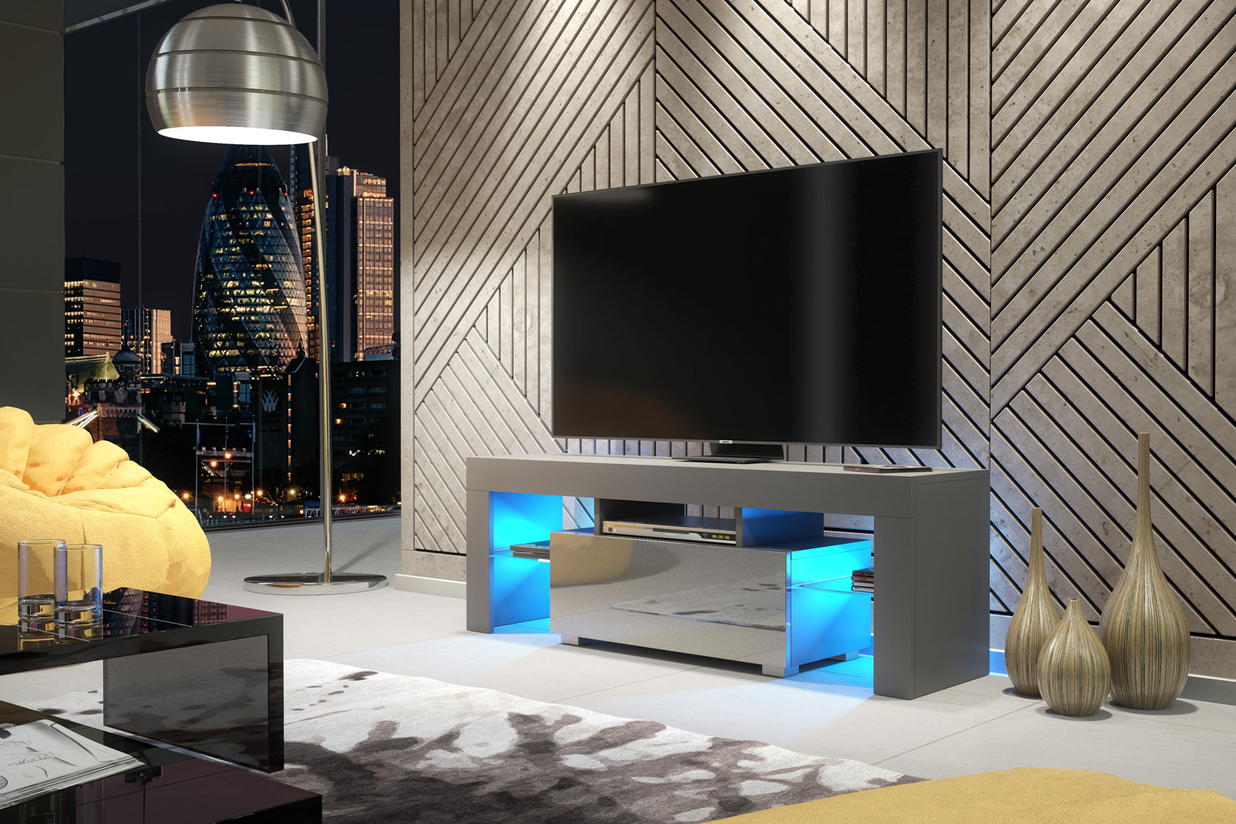 Create a sleek, modern focal point with this 130cm Grey Matt & Grey Gloss TV unit from Olivia Furniture. Designed for contemporary interiors that favour tonal balance, clean lines, and practical storage, this media unit delivers a refined, minimalist look perfectly suited to everyday living.