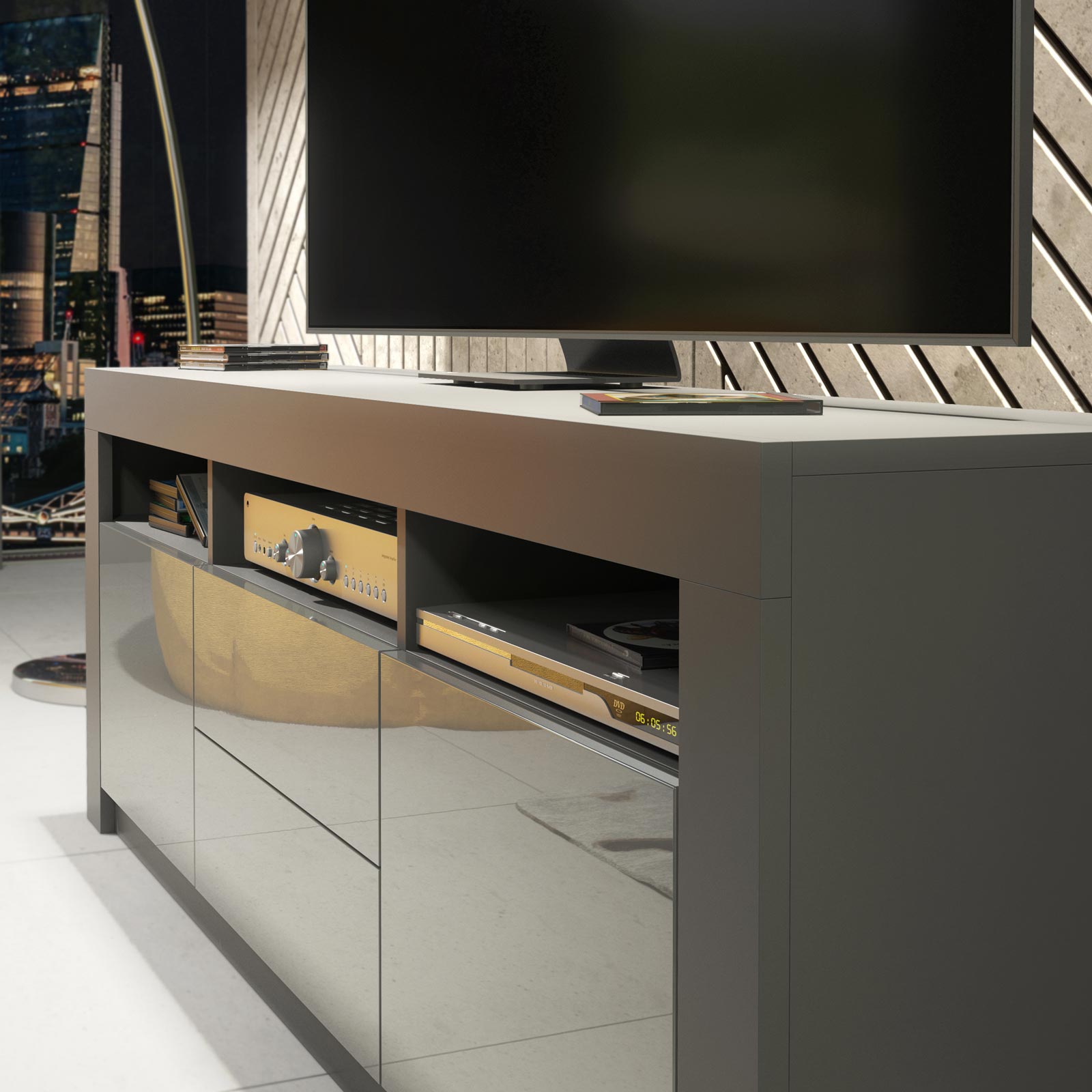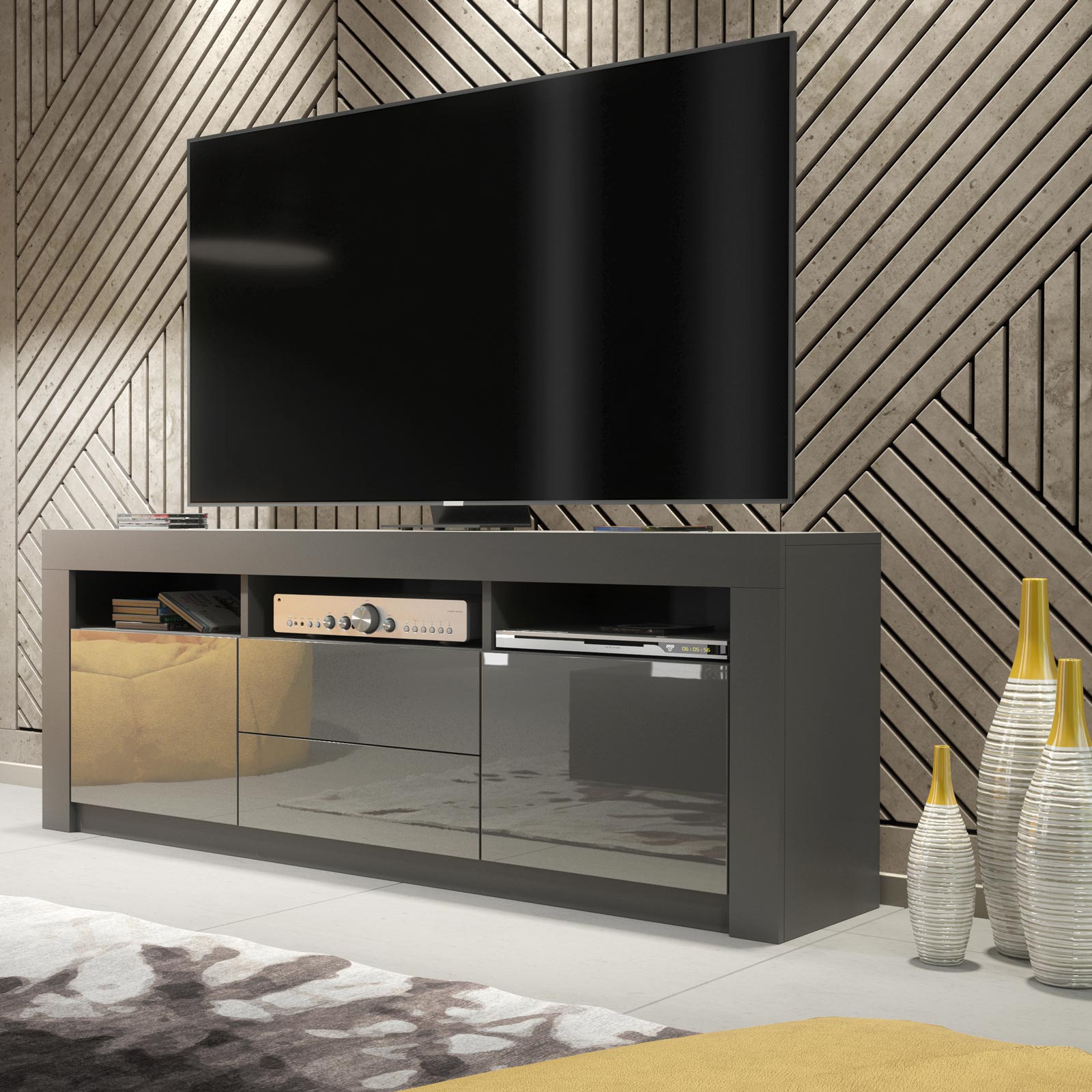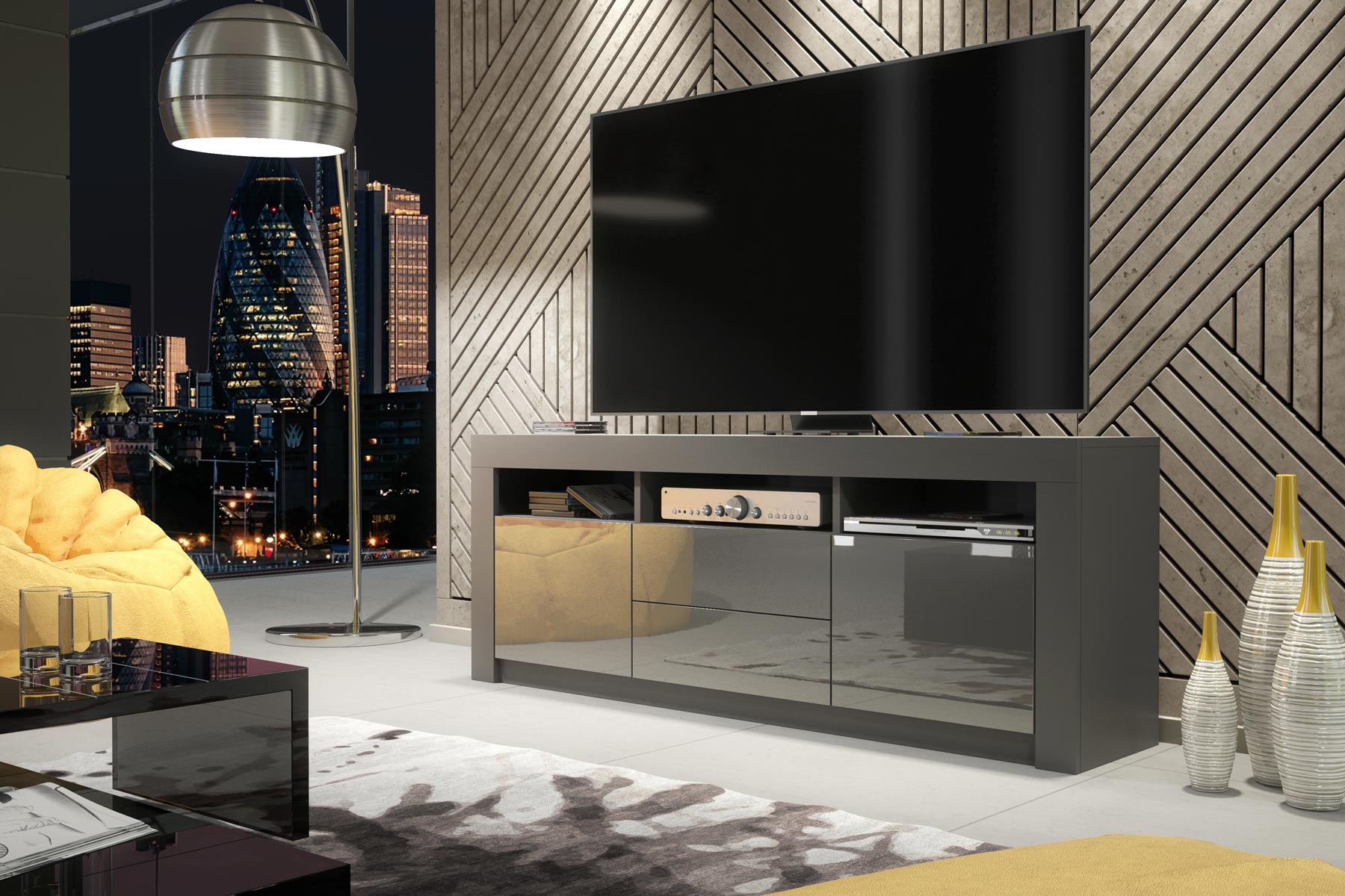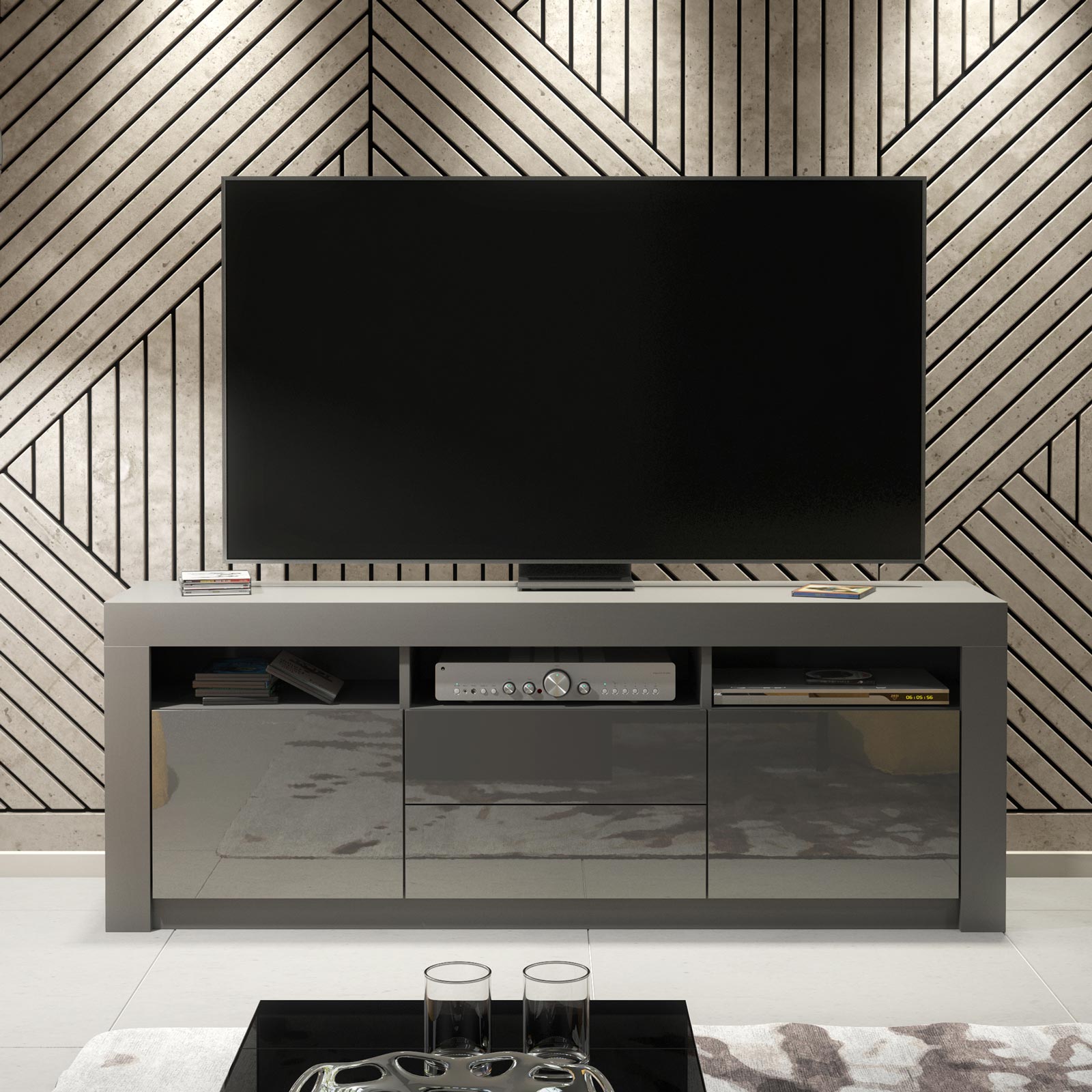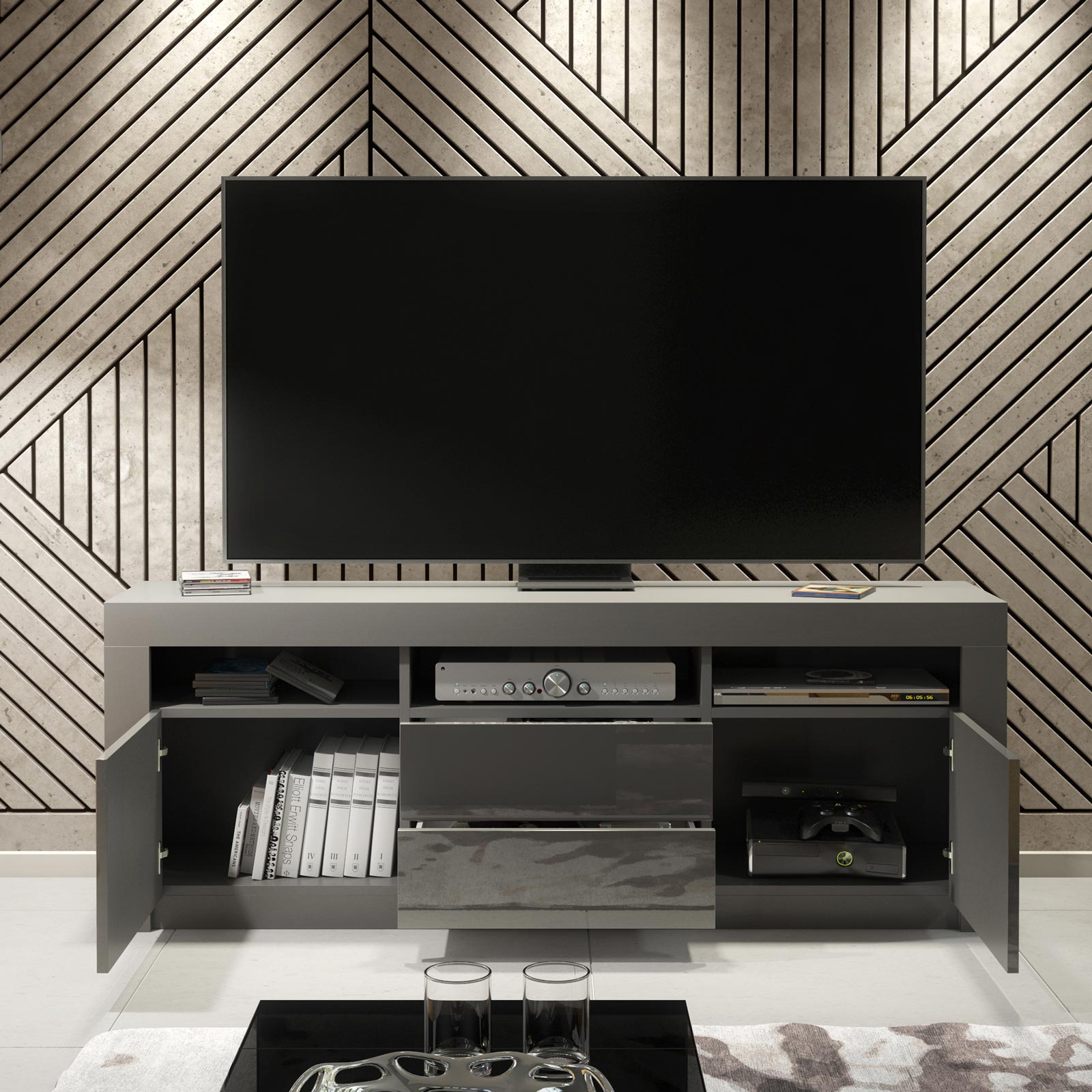 Create a sleek, contemporary focal point with this 160cm Modern TV Unit in a grey matt body with grey gloss fronts from Olivia Furniture. Designed for modern interiors that value tonal balance, clean lines, and everyday practicality, this media unit delivers a refined, minimalist look with generous storage.