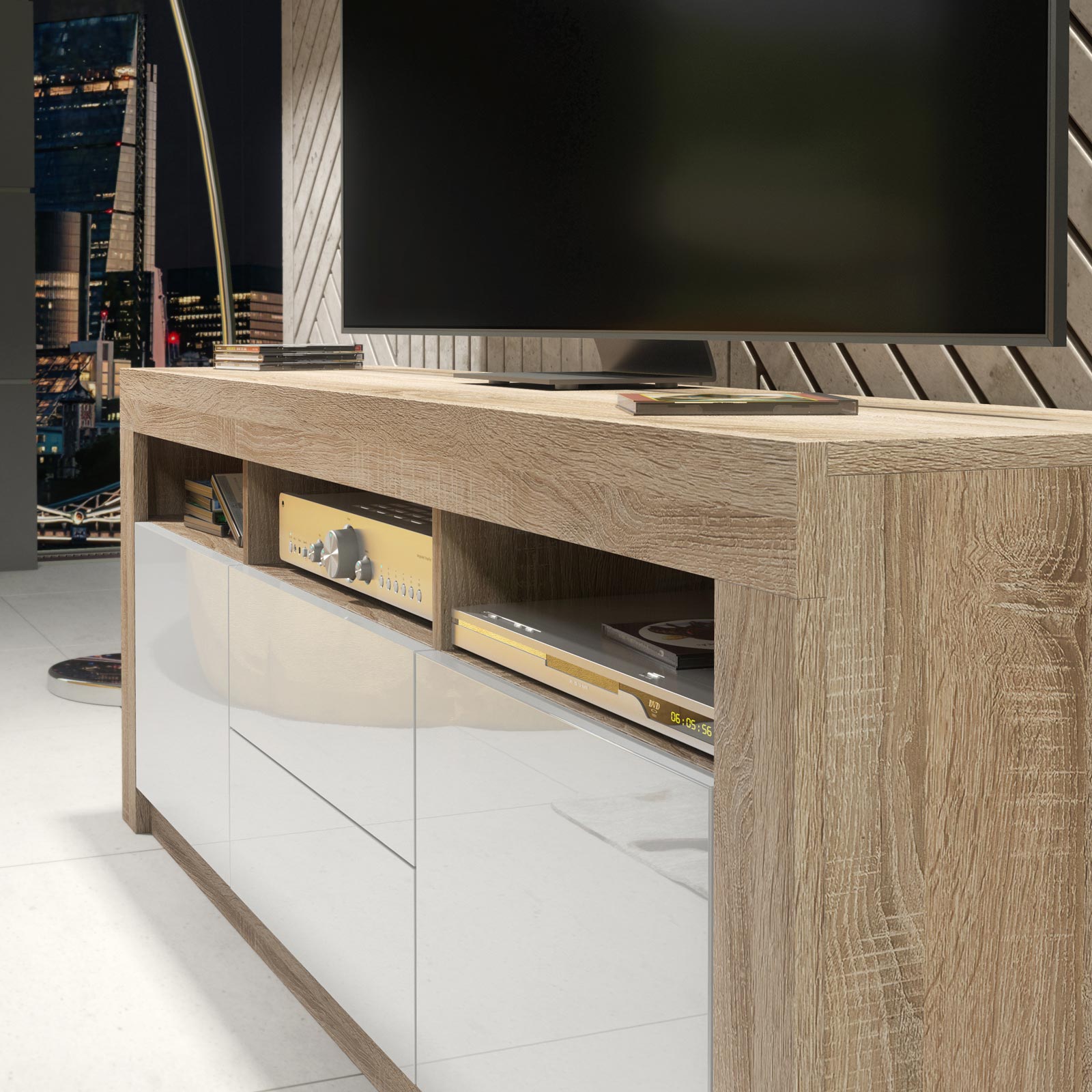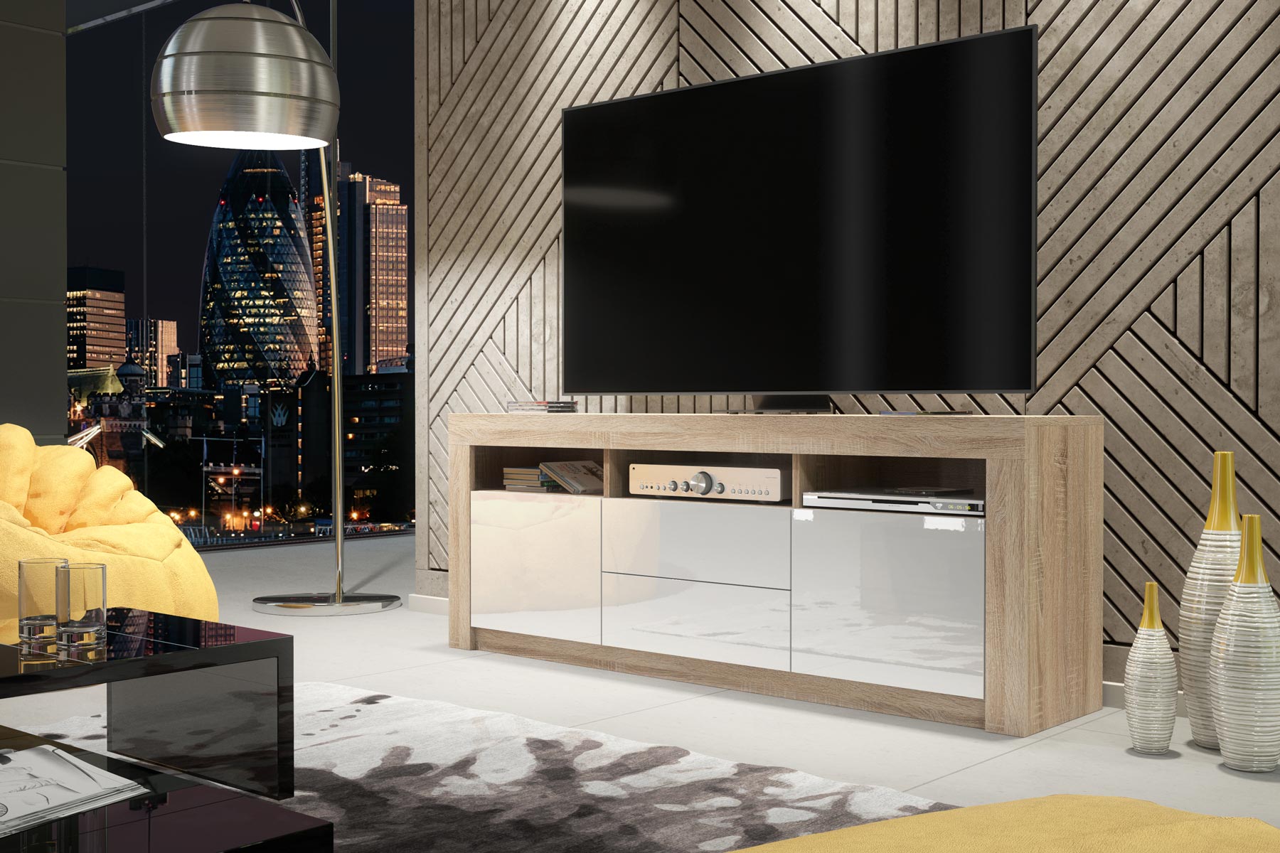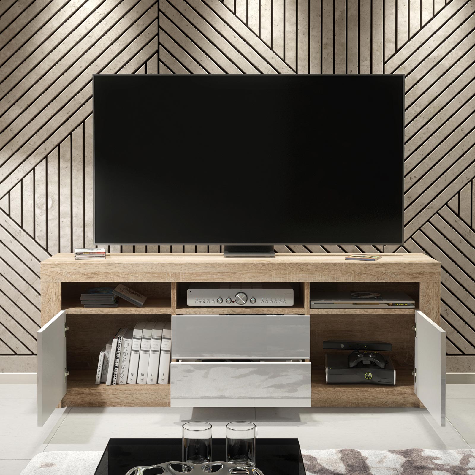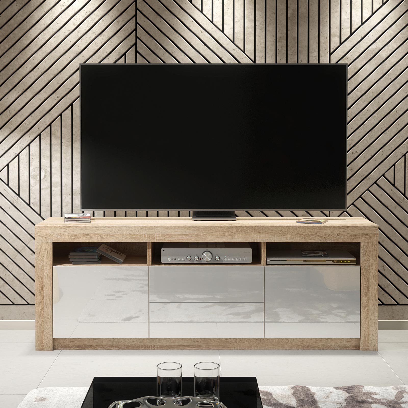 Create a warm yet contemporary focal point with this 160cm Modern TV Unit in an oak matt body with white gloss fronts from Olivia Furniture. Designed for modern interiors that blend natural textures with clean, refined finishes, this media unit offers generous storage with a timeless, balanced look.