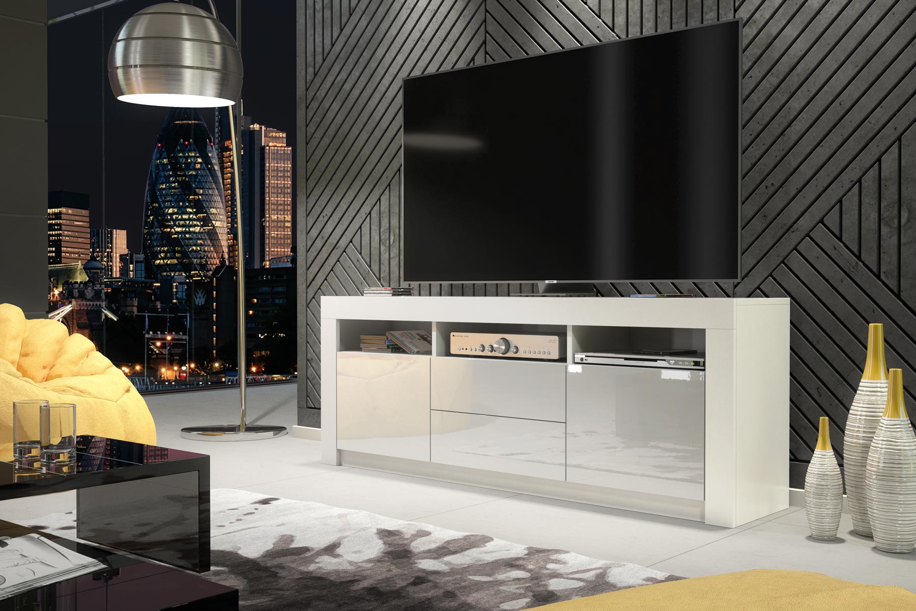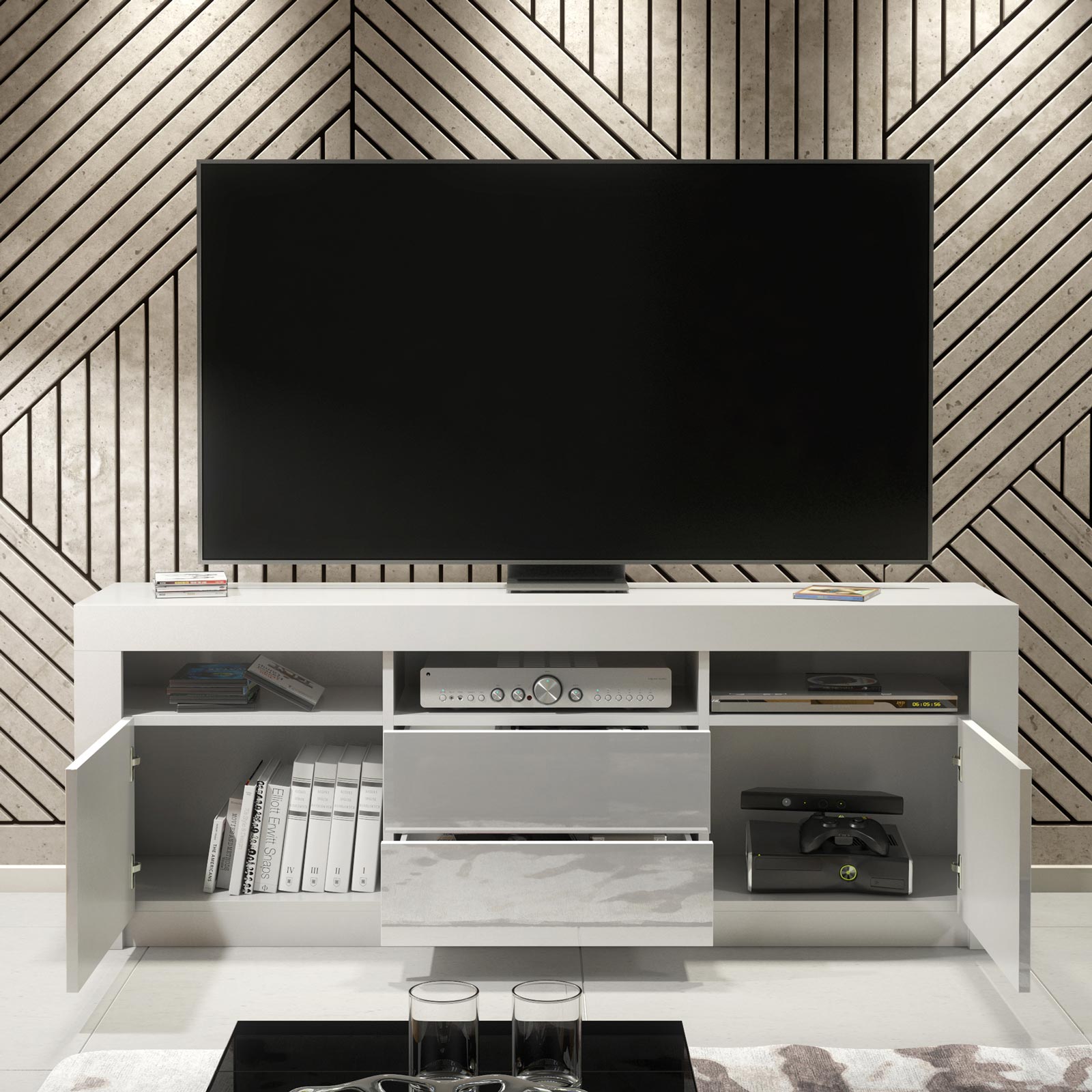 Create a clean, modern focal point in your living room with this 160cm Modern TV Unit in a white matt body with white gloss fronts from Olivia Furniture. Designed for contemporary interiors that value simplicity, balance, and practical storage, this media unit offers a timeless look combined with everyday functionality.