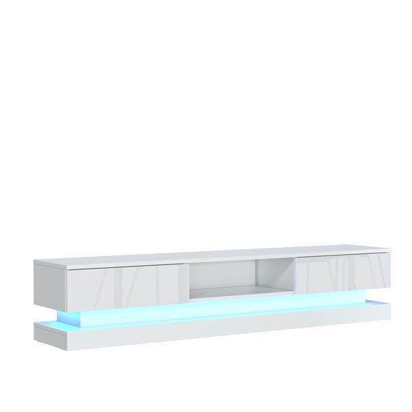A free LED light strip runs along the full length of the unit, creating a subtle ambient glow beneath the cabinet. This soft illumination enhances the floating effect of the design and adds atmosphere without overpowering the space.