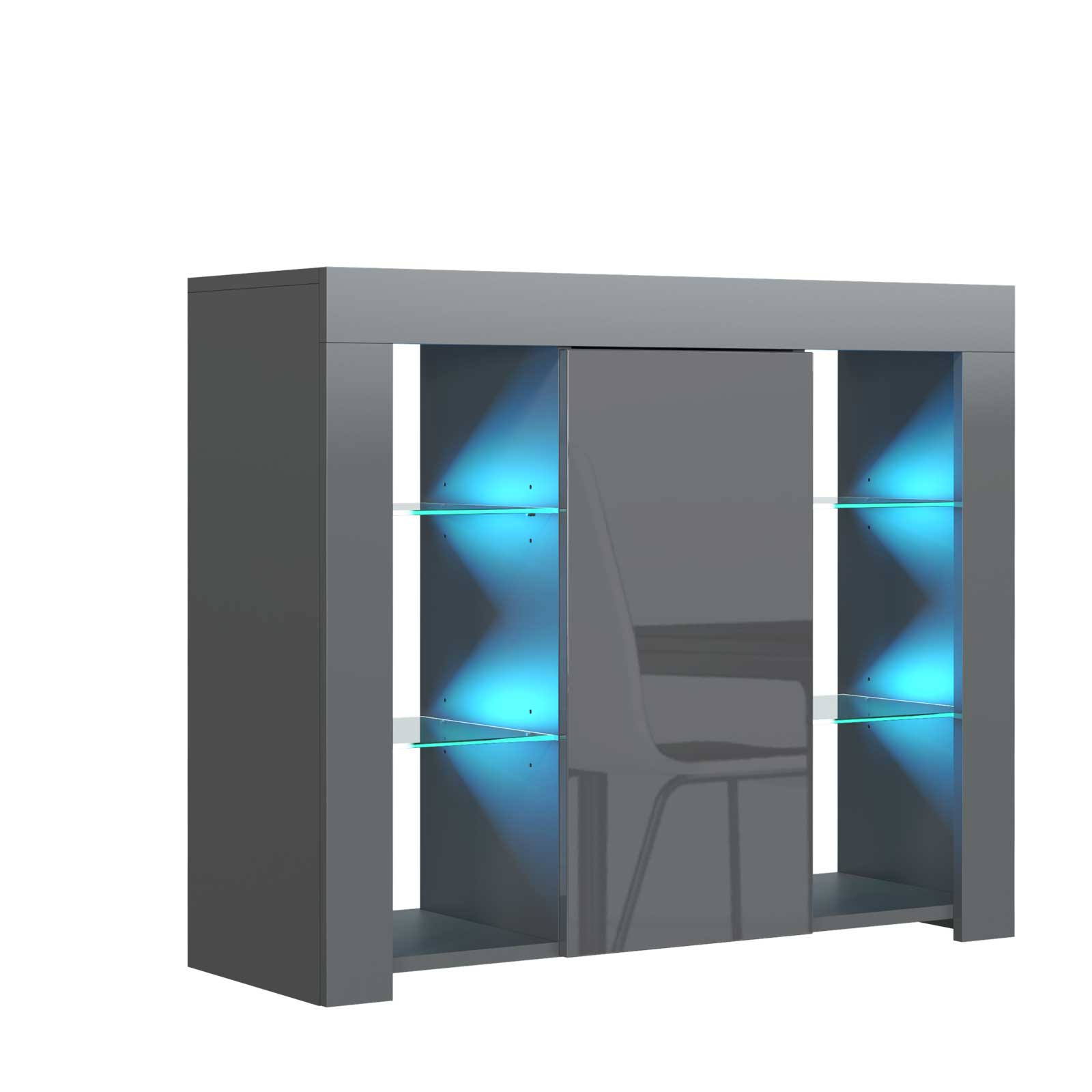 97cm Modern Sideboard Grey Matt & Grey Gloss with Free LED Lights, Push-to-Open Door, Glass Display Cabinet – Living Room Storage Unit