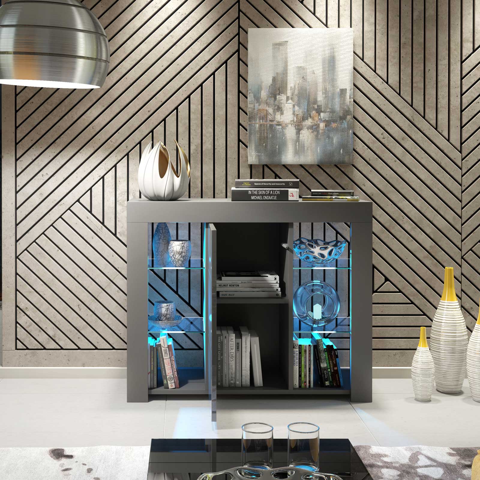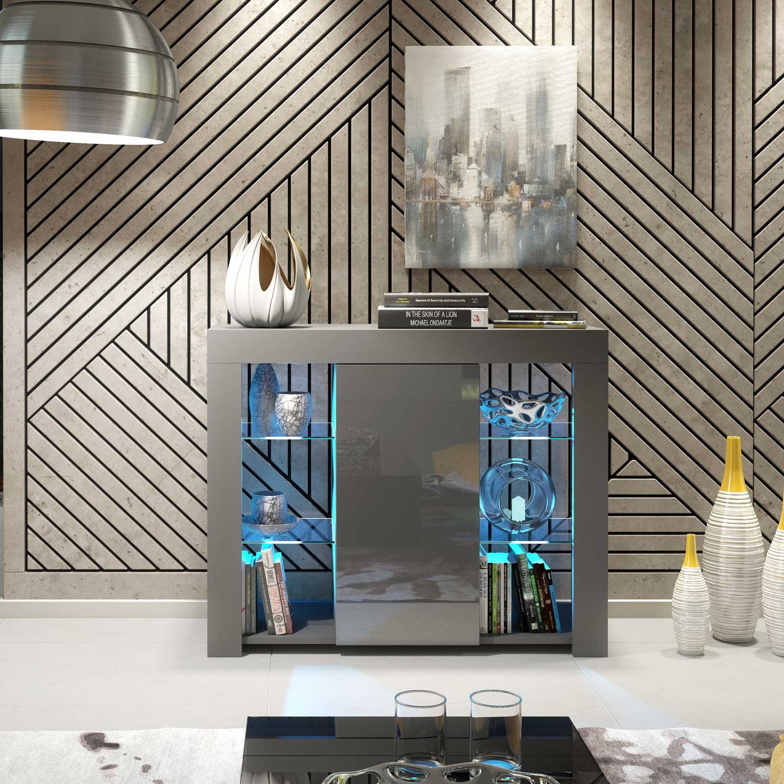 Create a sleek, contemporary statement with this 97cm grey sideboard, designed to combine elegant display space with practical everyday storage. The tonal grey finish offers a refined, modern look that works beautifully in minimalist and monochrome interiors.