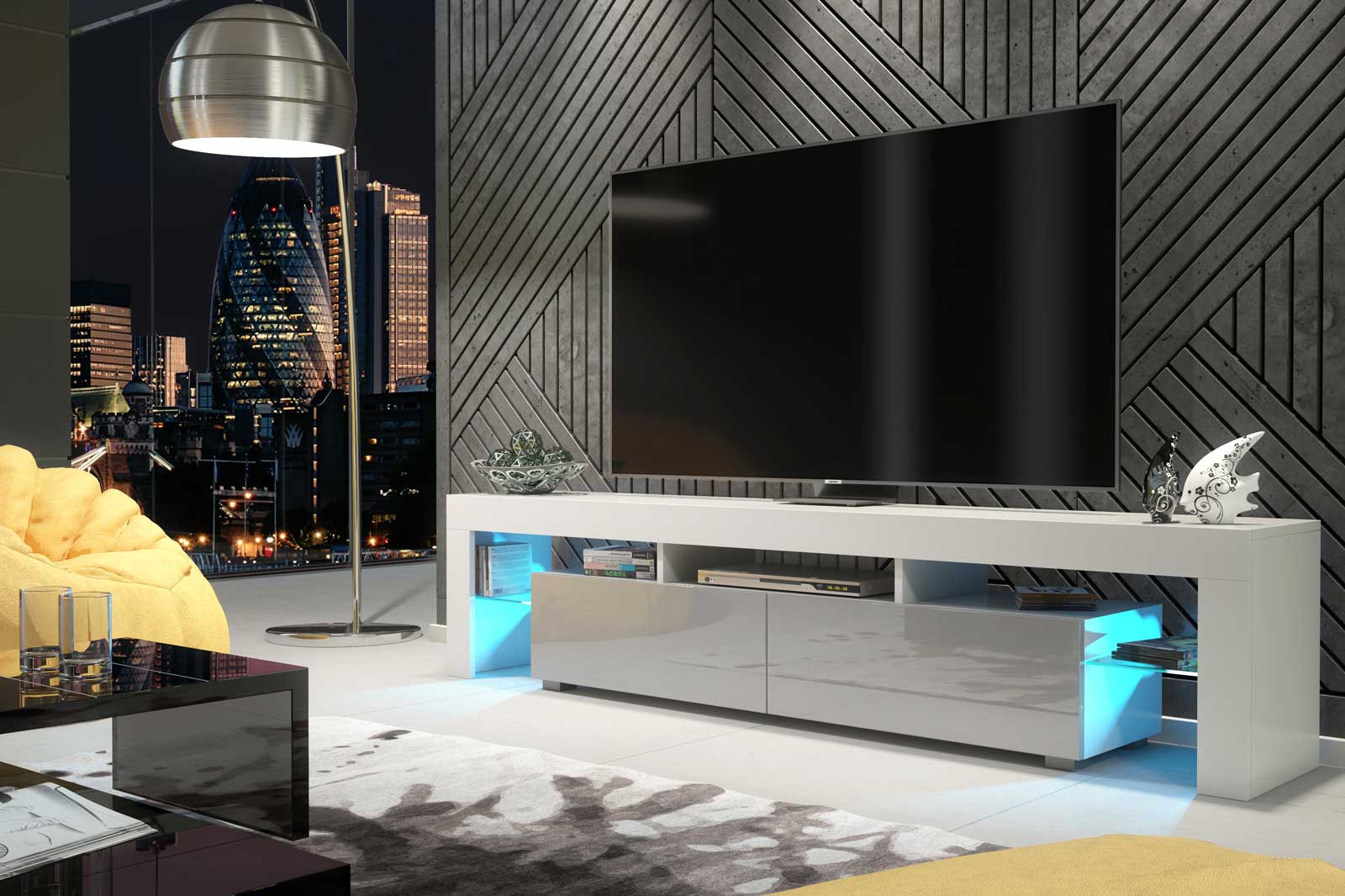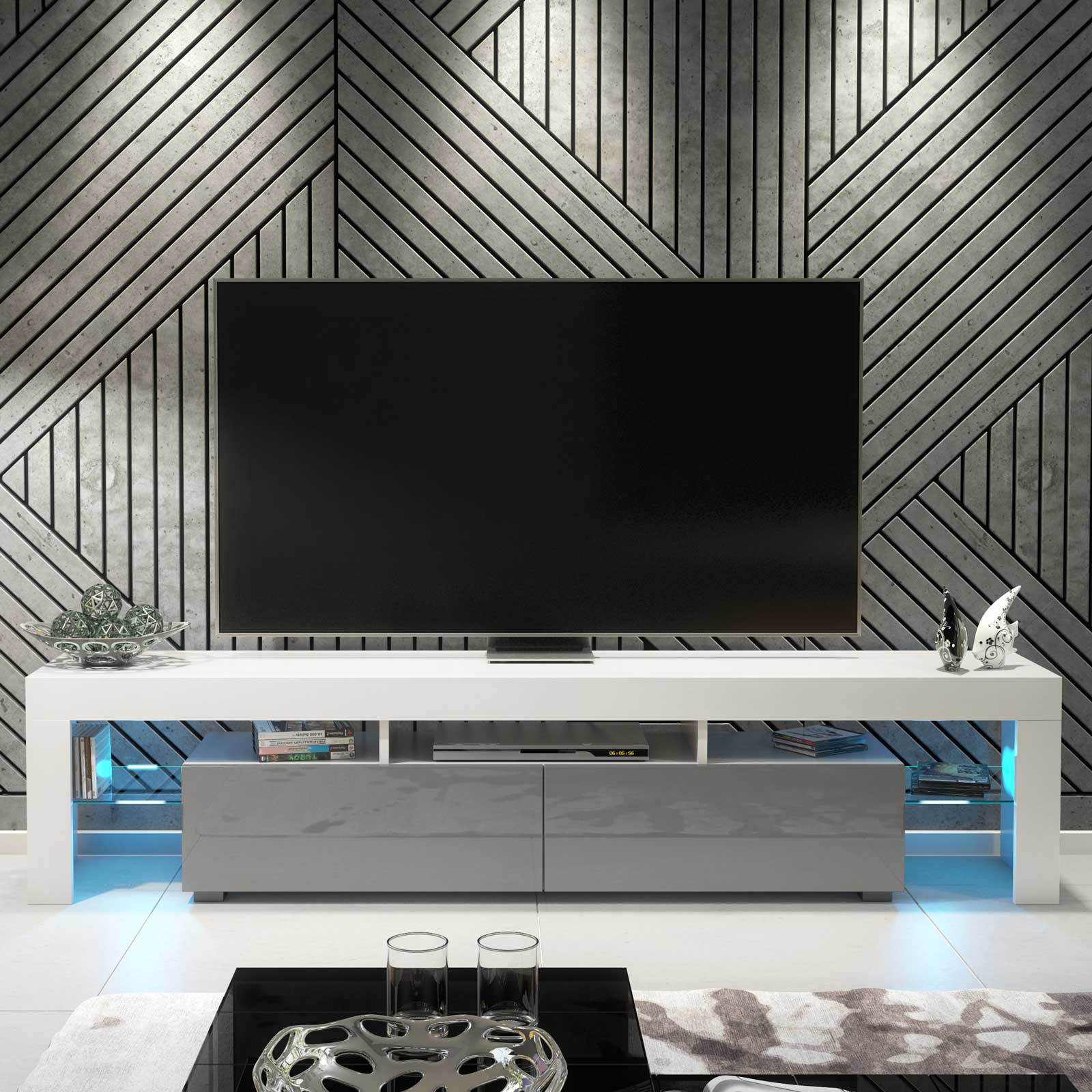 Create a refined, modern focal point in your living room with this extra-wide 200cm White Matt & Grey Gloss TV unit from Olivia Furniture. Designed for contemporary interiors, this media cabinet combines elegant two-tone styling with practical storage solutions for everyday living.