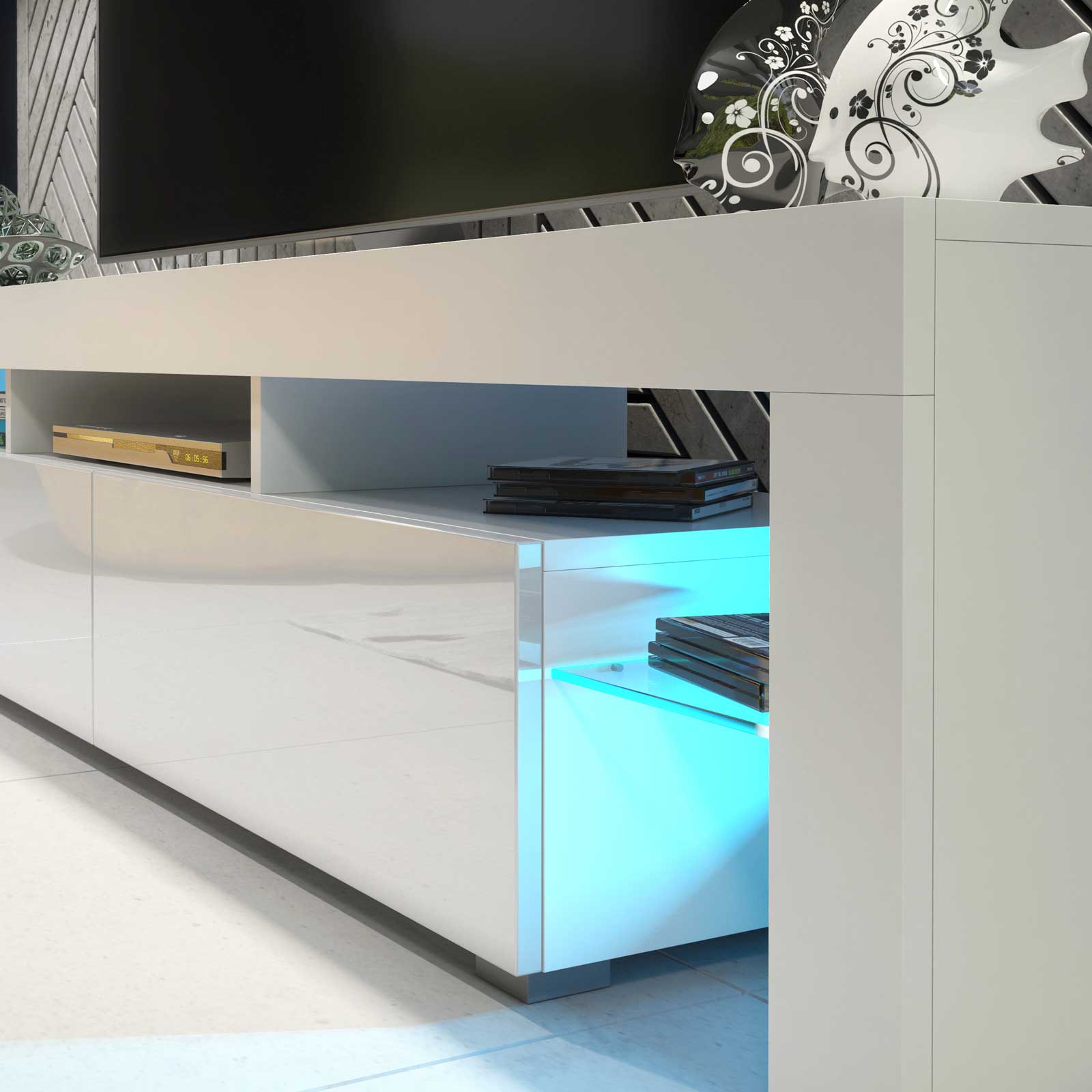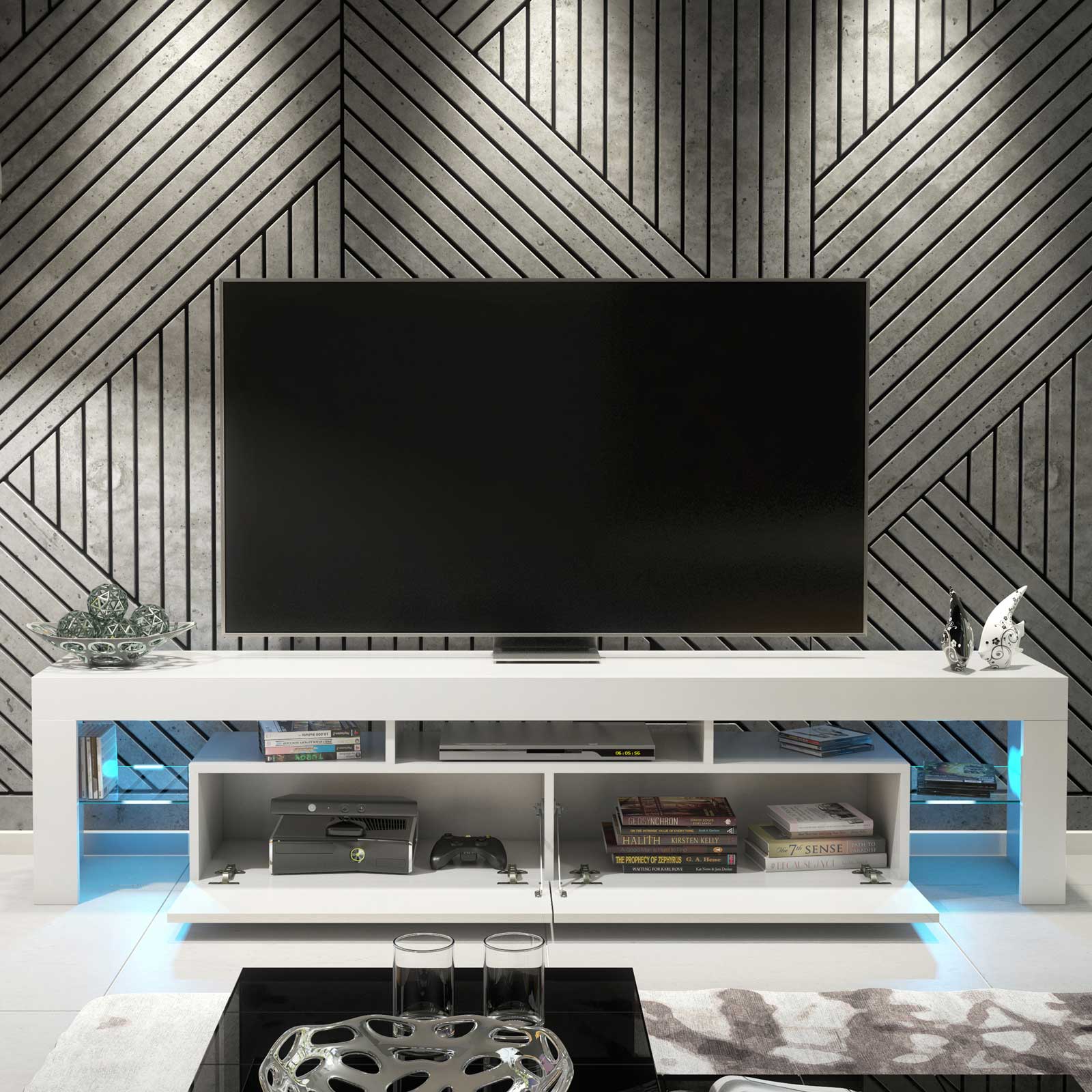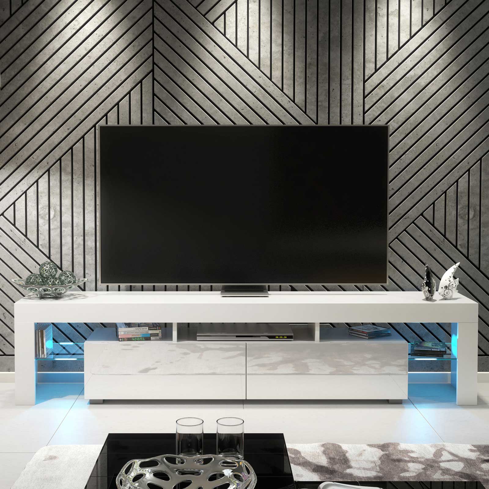 The clean white matt body is paired with sleek white gloss front panels, creating a bright, premium look that reflects light beautifully and enhances modern interiors. Its extended 2-metre width gives the unit a strong, architectural presence — ideal as the focal point of your living space.