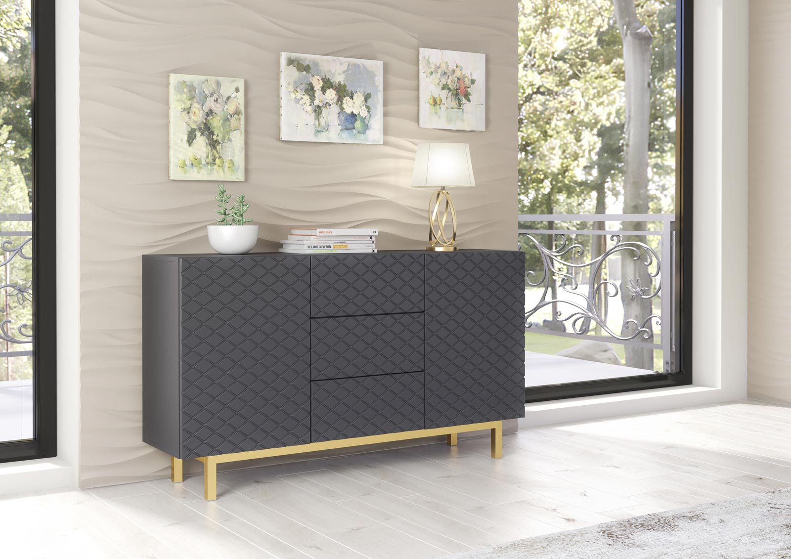 Elevate your interior with this 140cm Grey Matt Sideboard, designed in the same contemporary diamond-textured collection as the matching TV unit.