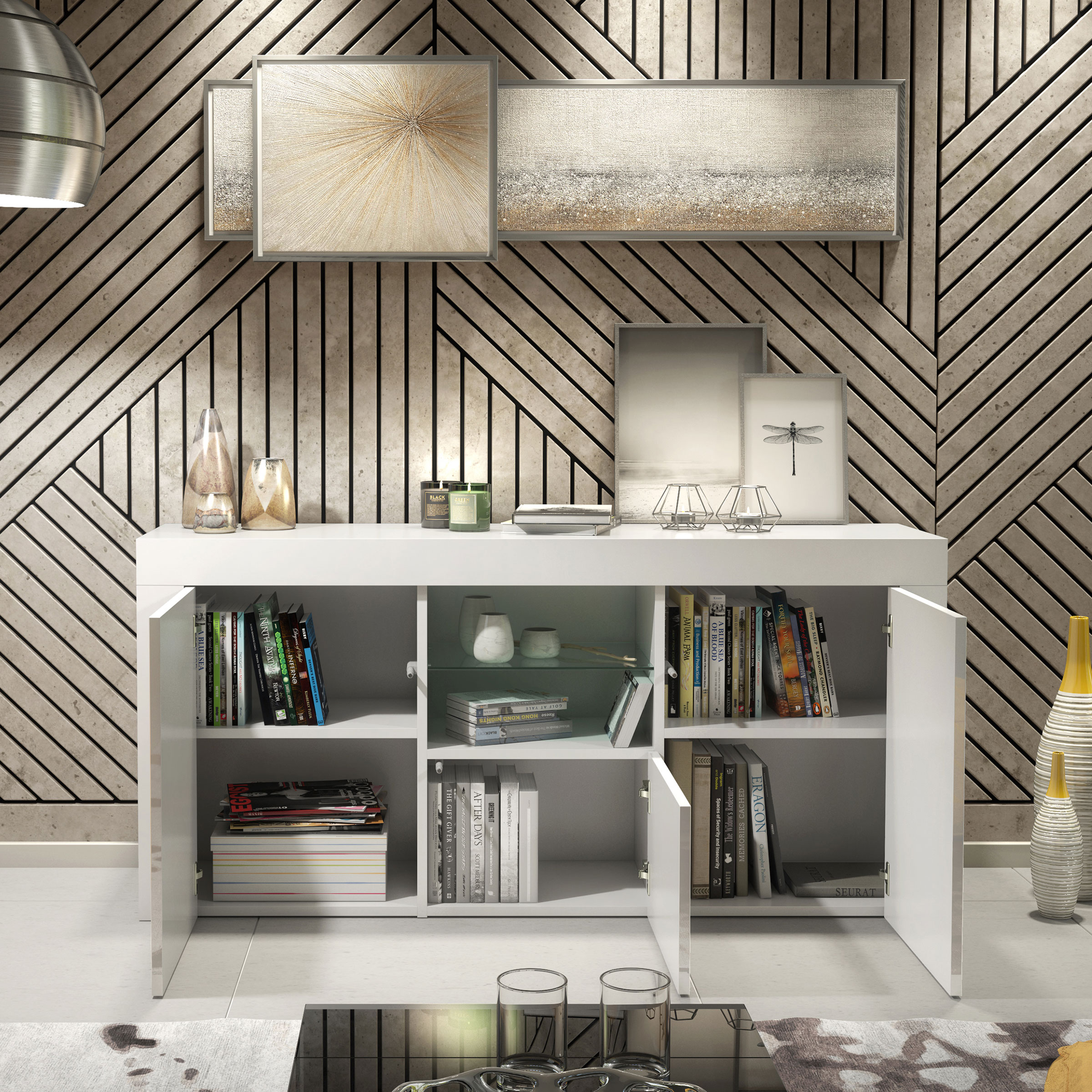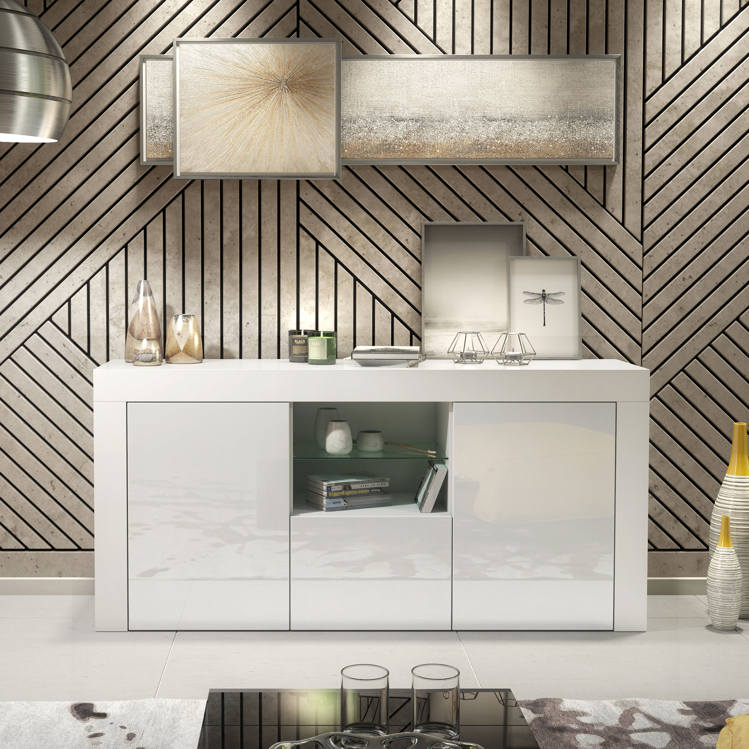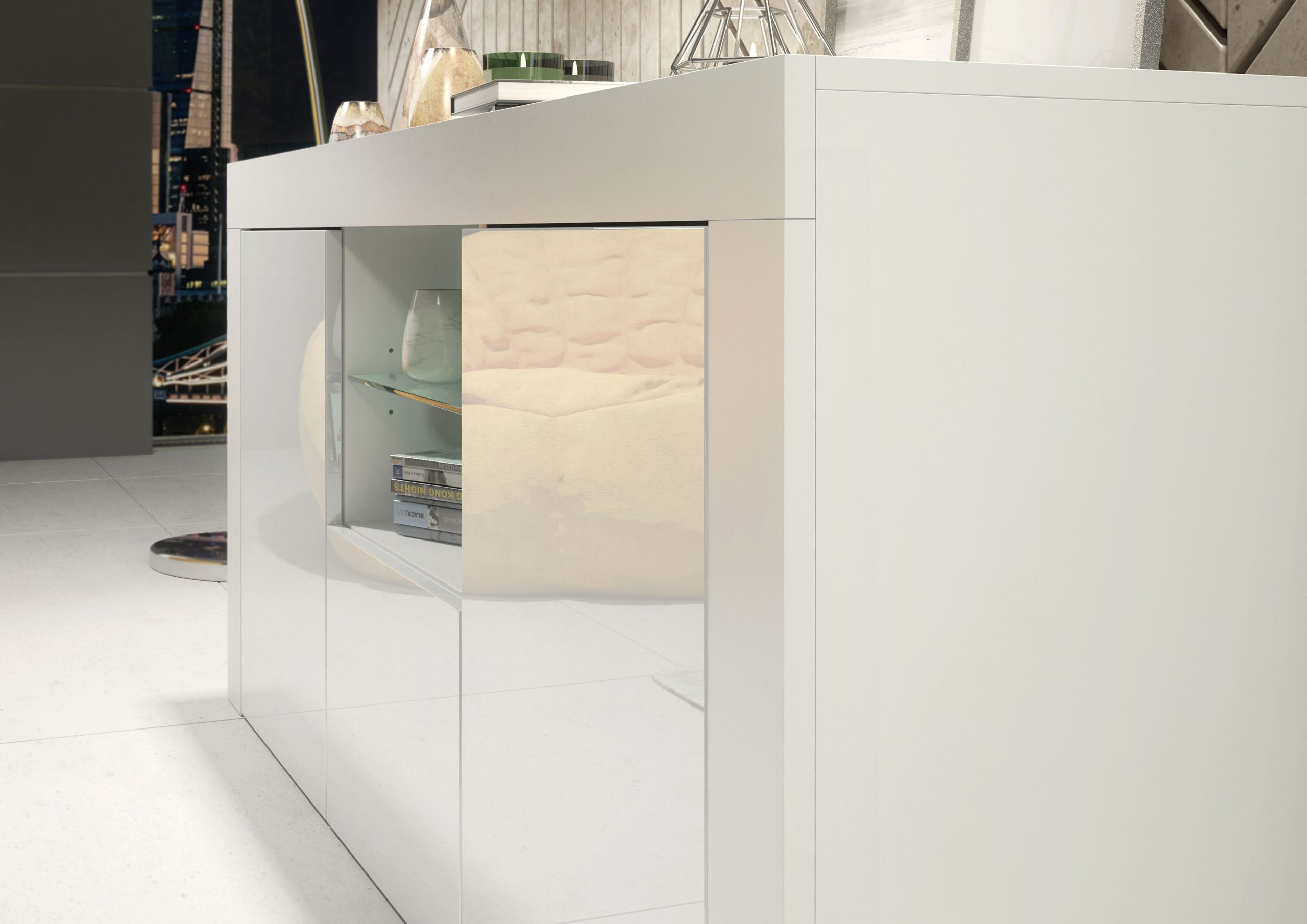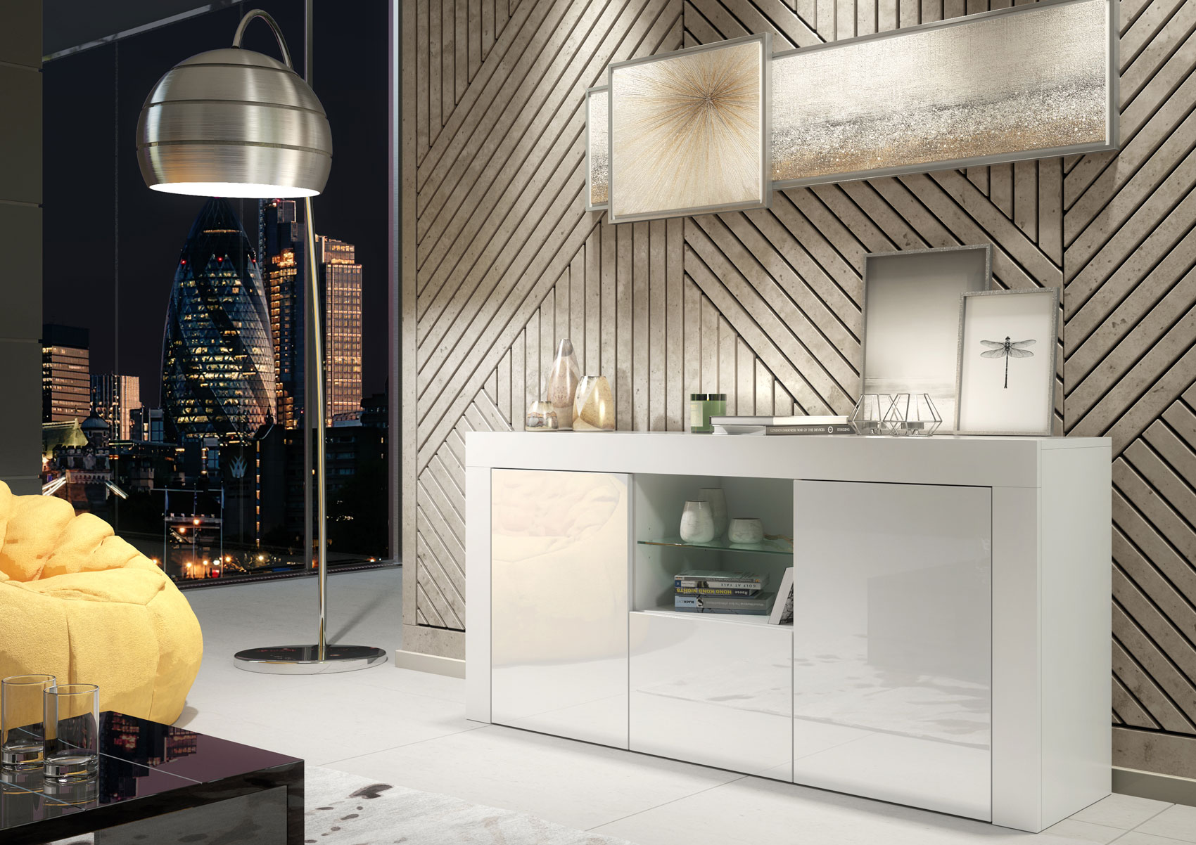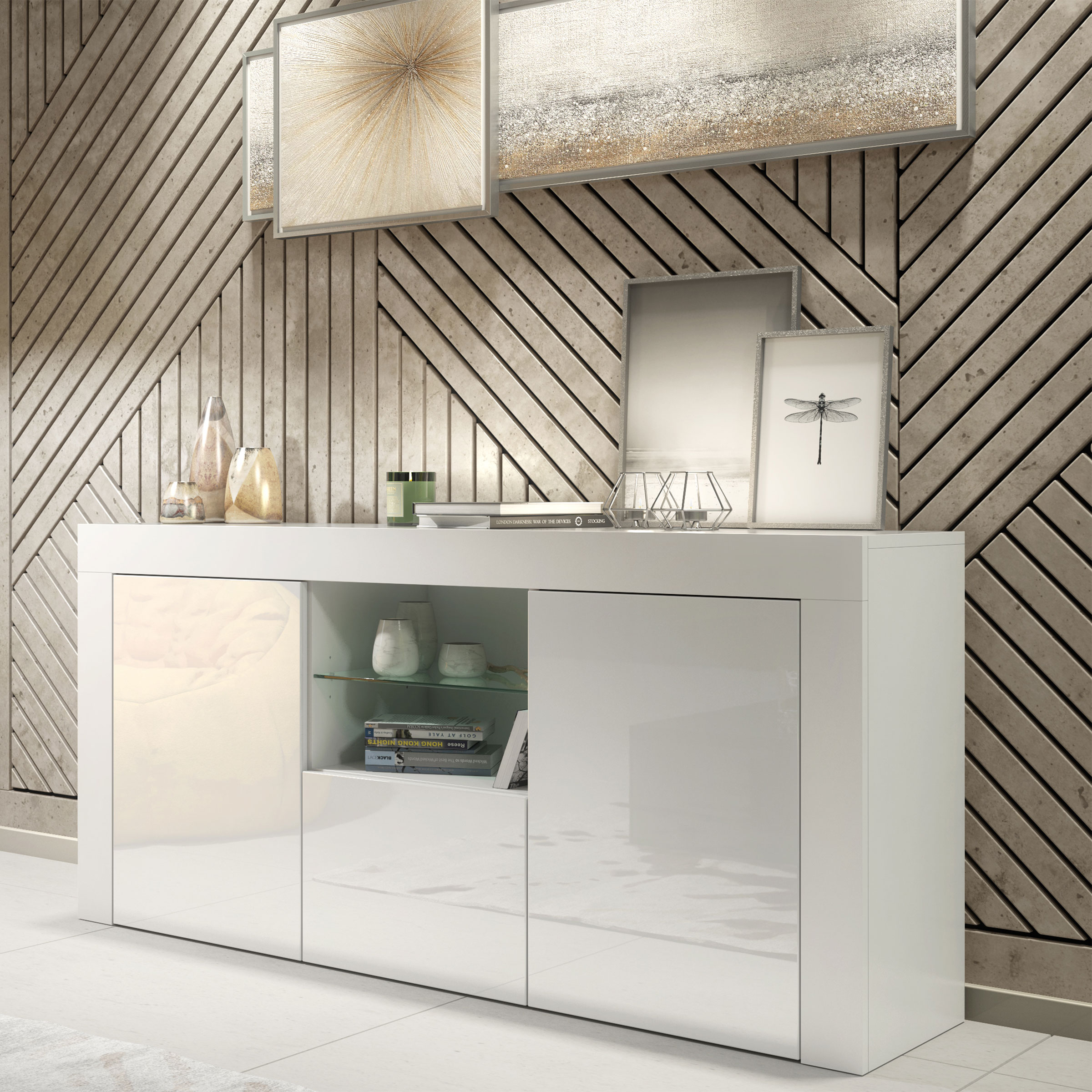 Finished in a white matt body paired with elegant white high-gloss doors, this TV unit sideboard reflects light beautifully, helping to create a bright, spacious feel while maintaining a polished, high-end look. Crafted from durable MDF and chipboard, the construction ensures stability and reliability for everyday use while preserving a sleek, minimalist silhouette.