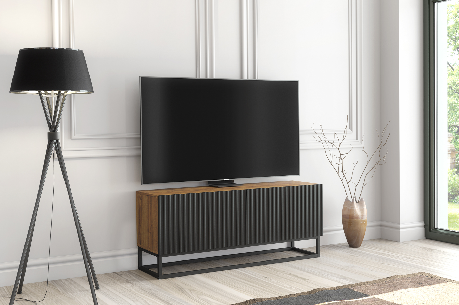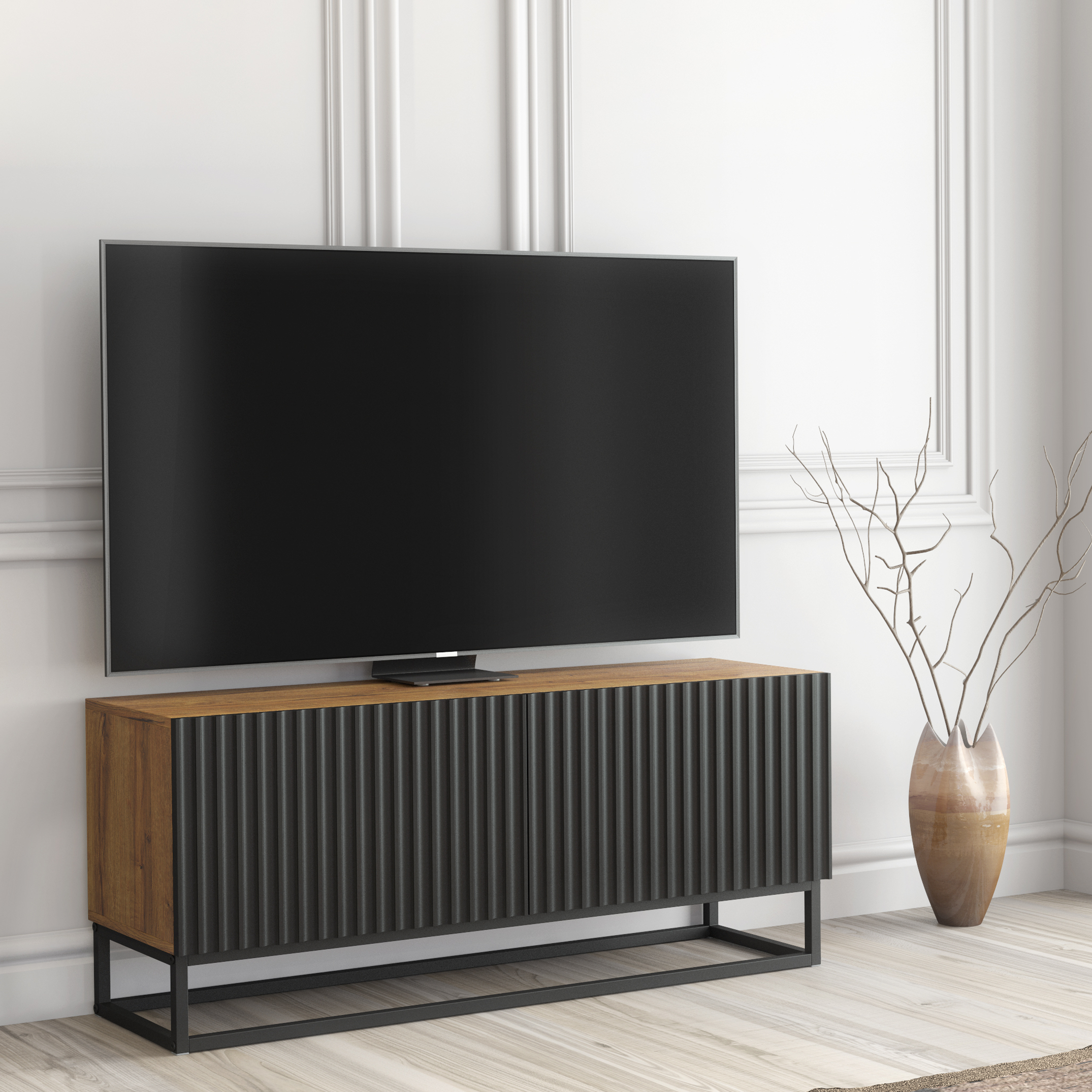 Premium fluted TV unit by Olivia Furniture