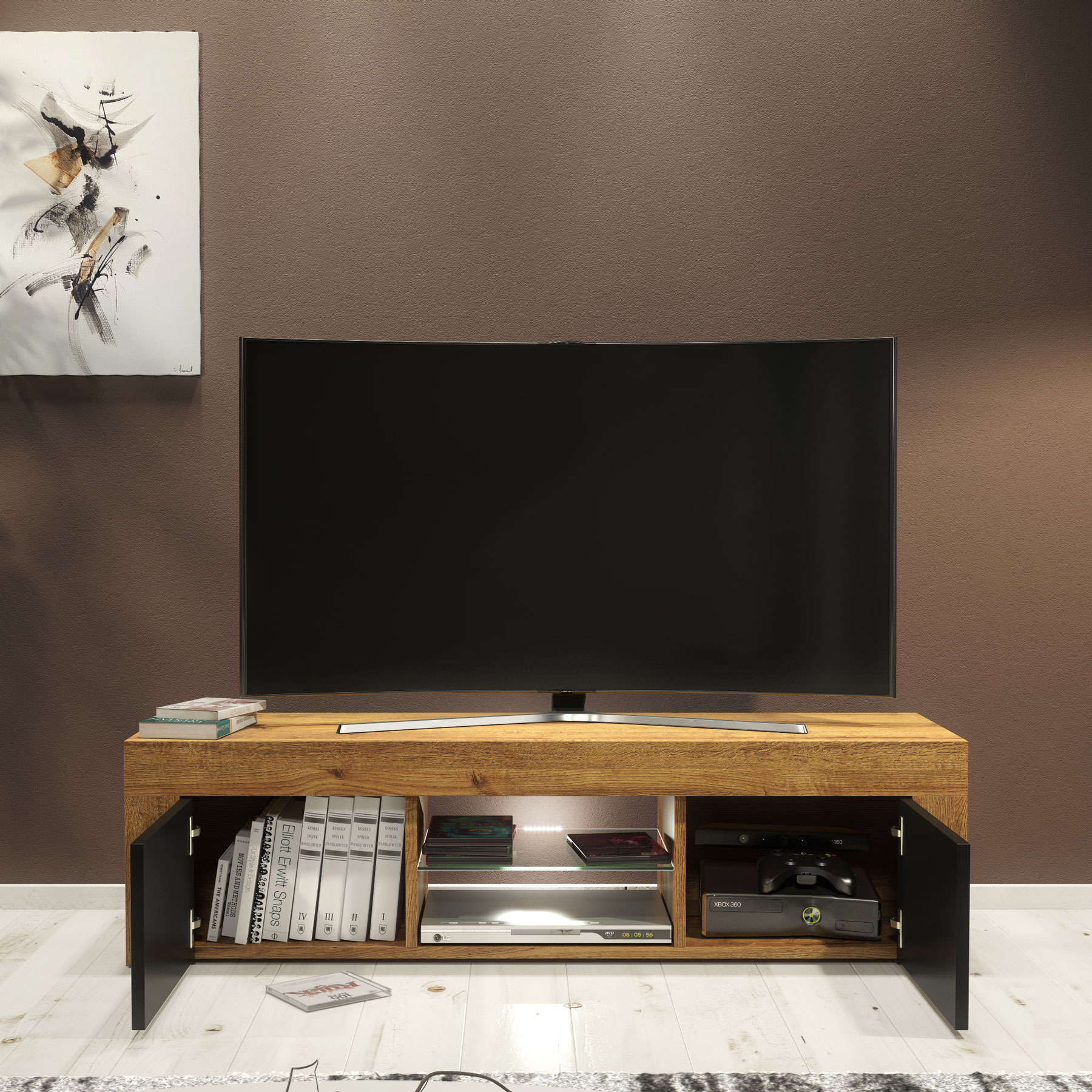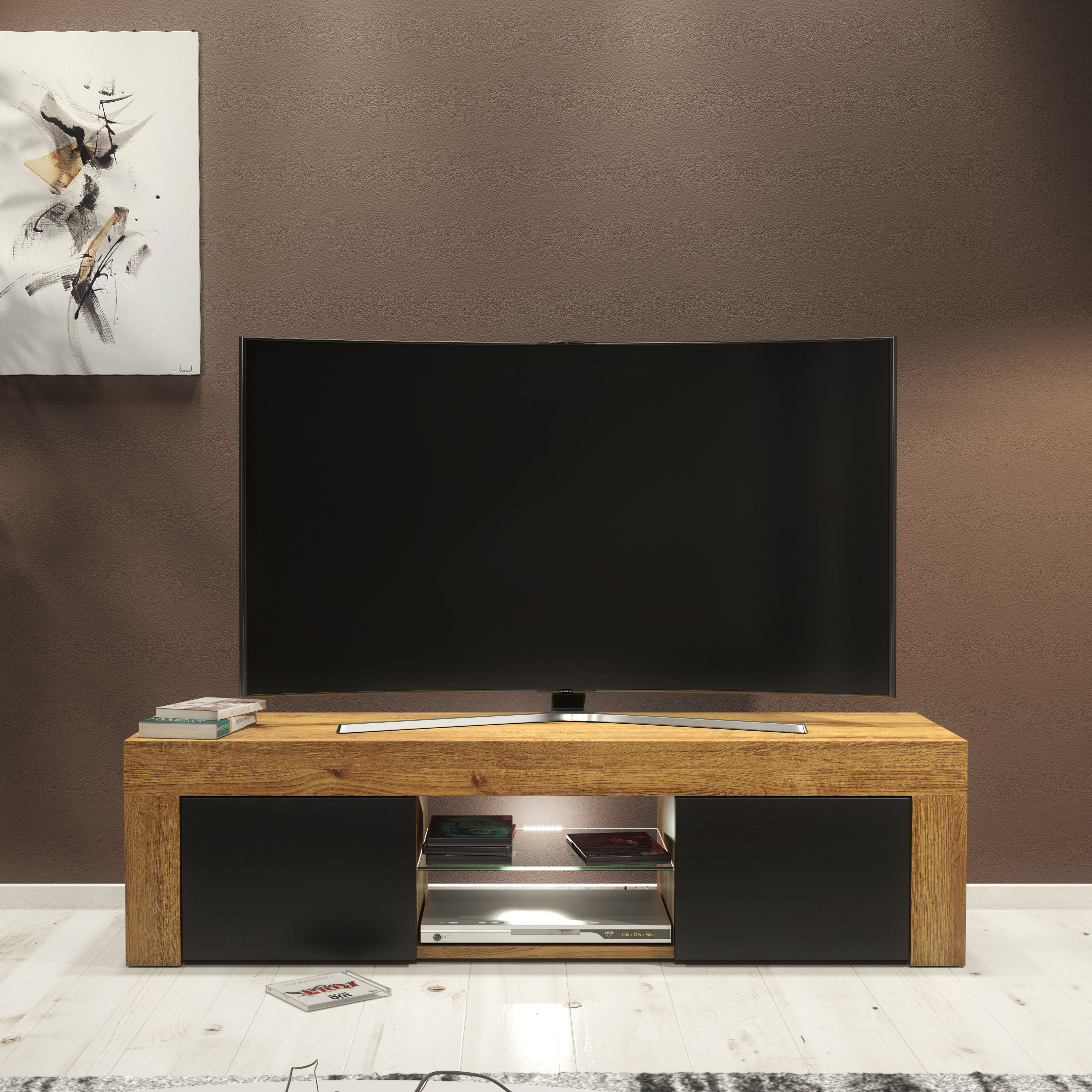 At the centre of the unit, a glass shelf provides an ideal space for a Sky box, media player, or games console. The open back panel behind the glass shelf allows cables to pass through easily, keeping your entertainment setup organised and visually clean.