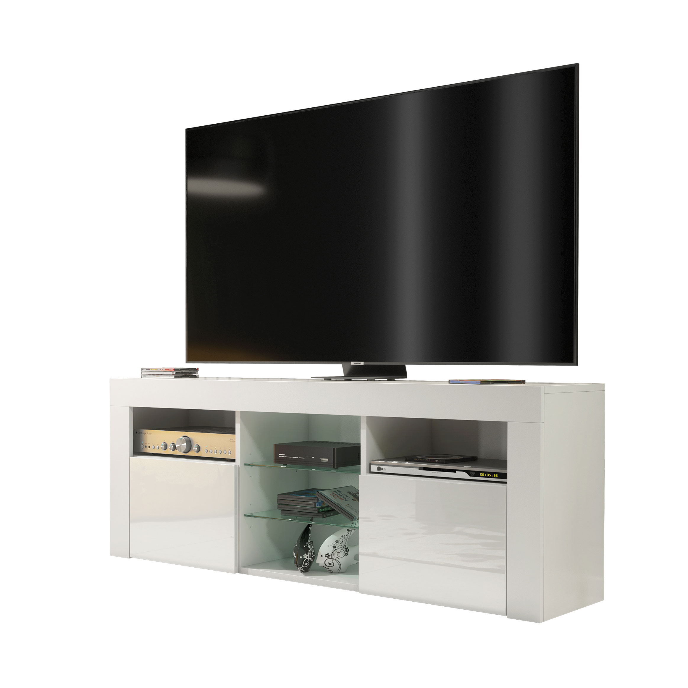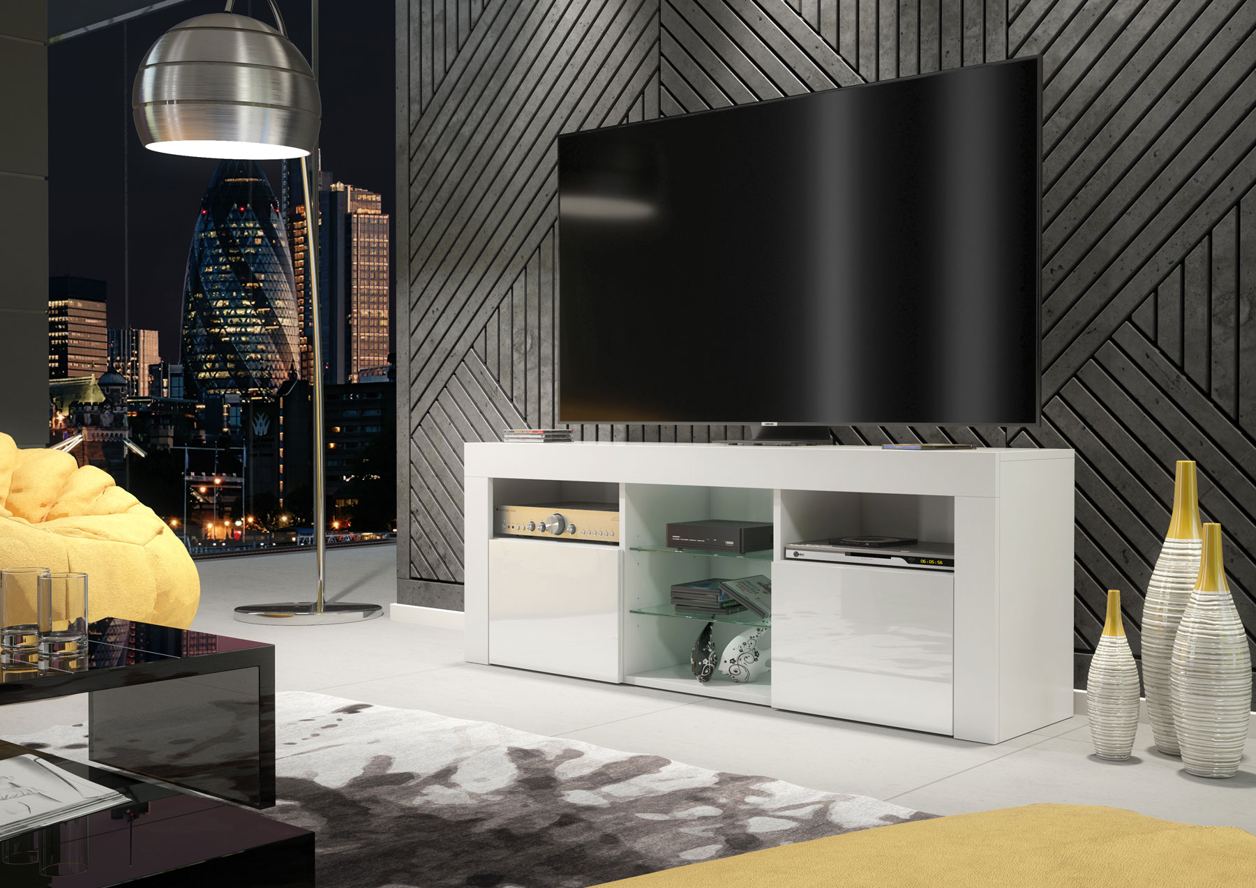 Finished in a white matt body paired with elegant white high-gloss doors, this TV unit reflects light beautifully and helps create a bright, spacious feel — ideal for both compact apartments and open-plan living rooms. Crafted from durable MDF and chipboard, it is built for reliable everyday use while maintaining a refined, contemporary appearance.