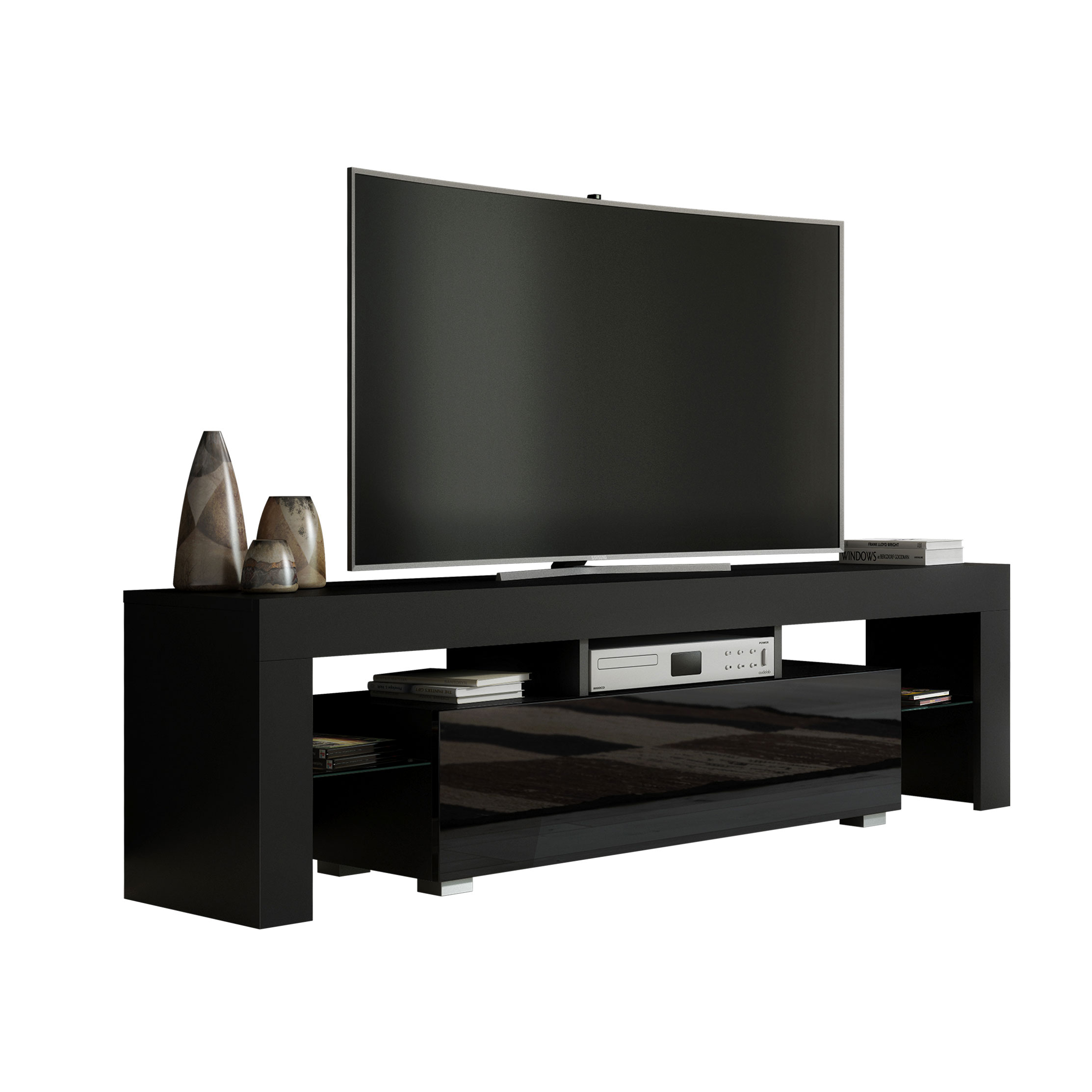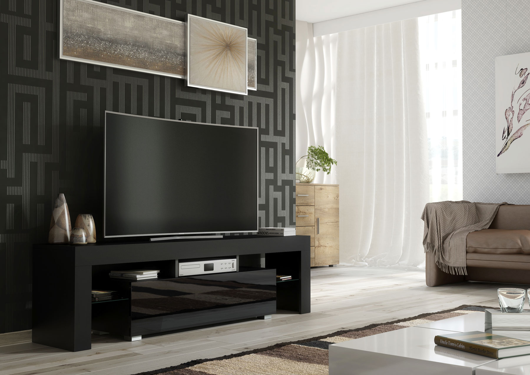 Finished in a black matt body paired with a black gloss front, this TV unit creates a striking contrast of textures that works effortlessly in modern, minimalist, and industrial interiors. Crafted from durable MDF and chipboard, it is designed for reliable everyday use while maintaining a sleek, contemporary silhouette.