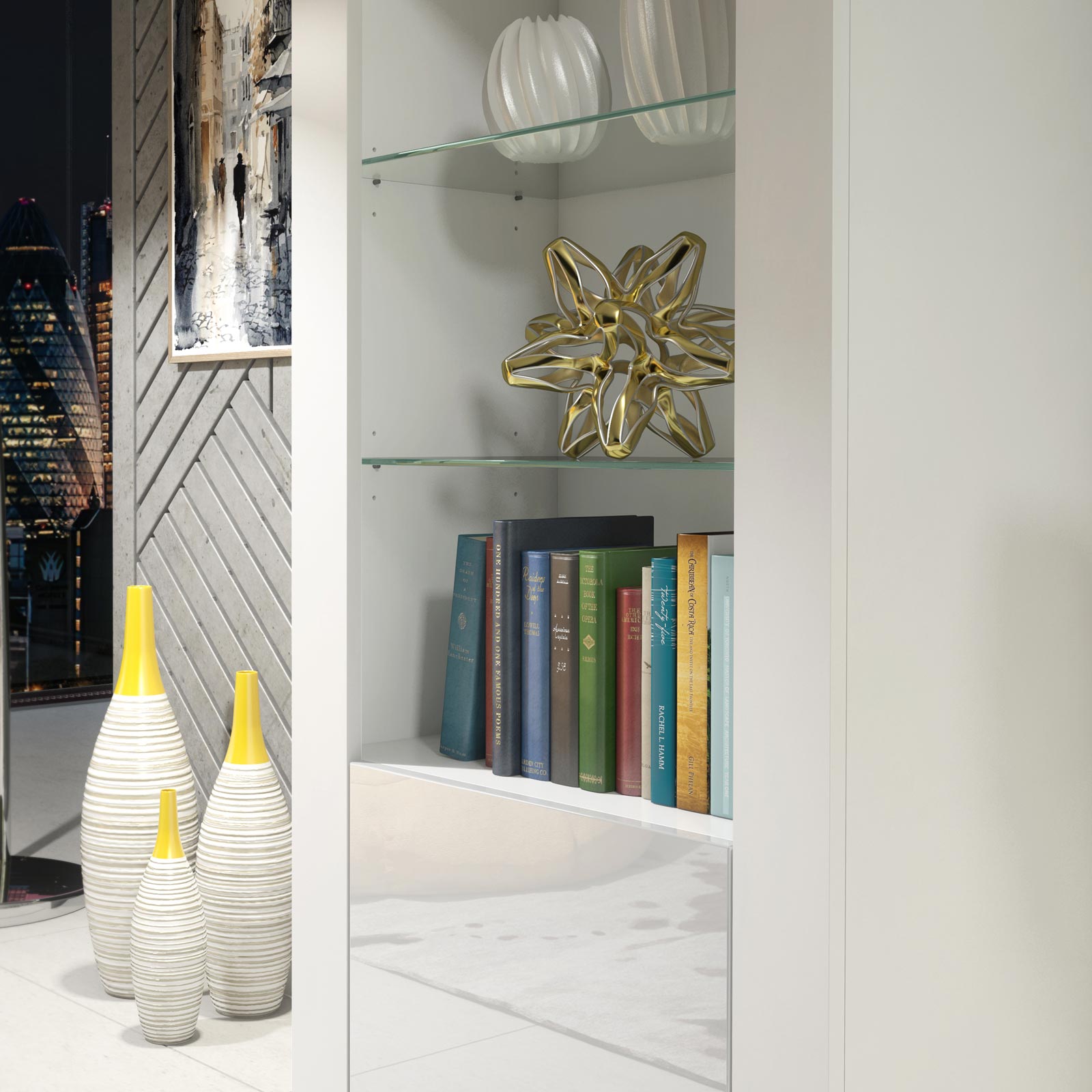 This Modern 170cm White Matt & White Gloss Display Cabinet is a refined storage and display solution designed for contemporary interiors that value light, balance, and everyday functionality. Designed by Olivia Furniture, this tall cabinet combines clean presentation with generous concealed storage, making it ideal for modern living rooms, dining spaces, or open-plan interiors.