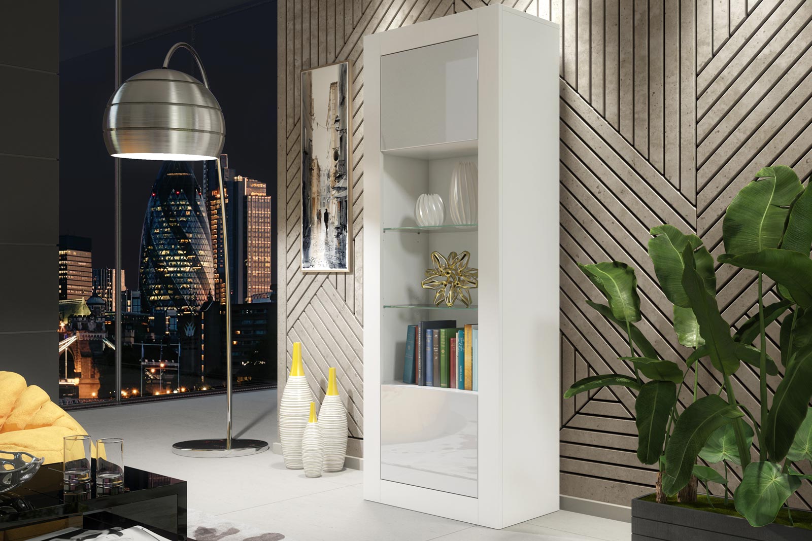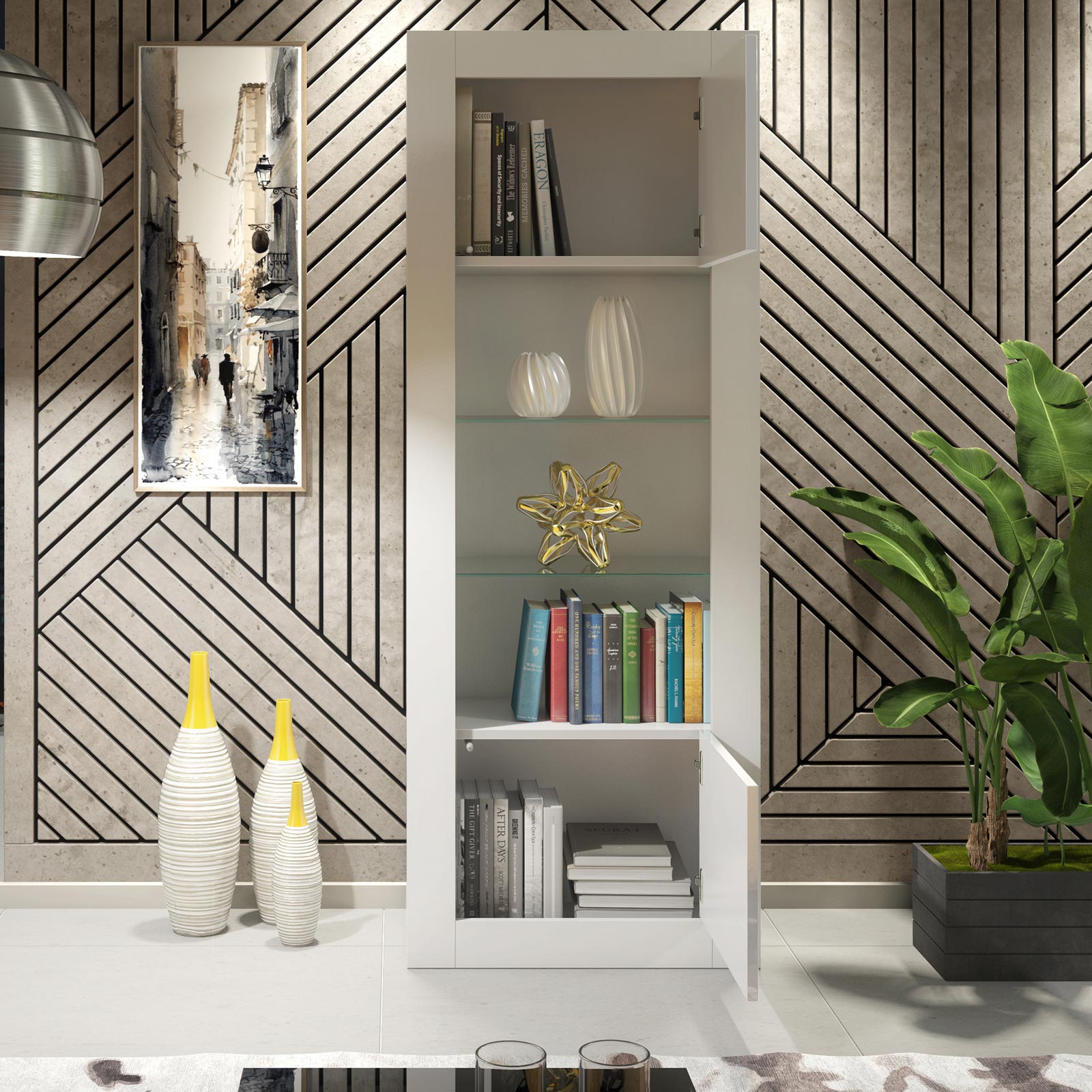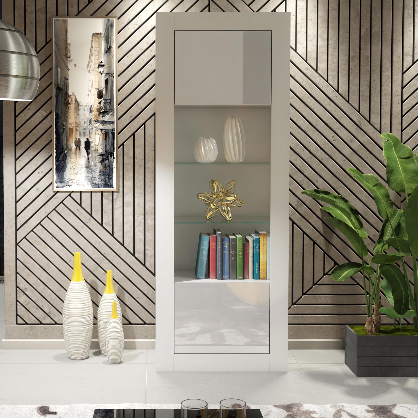 Crafted from durable MDF and chipboard, this display cabinet is built for reliable everyday use while maintaining a sleek, contemporary silhouette. Its tall, slim proportions make it suitable for both spacious interiors and narrower wall spaces.