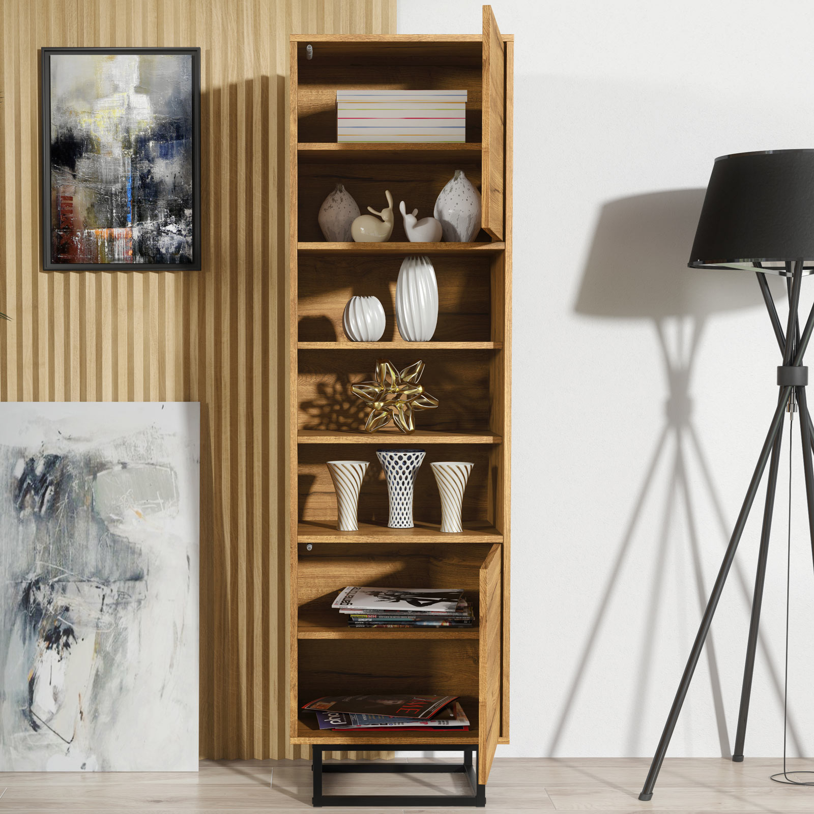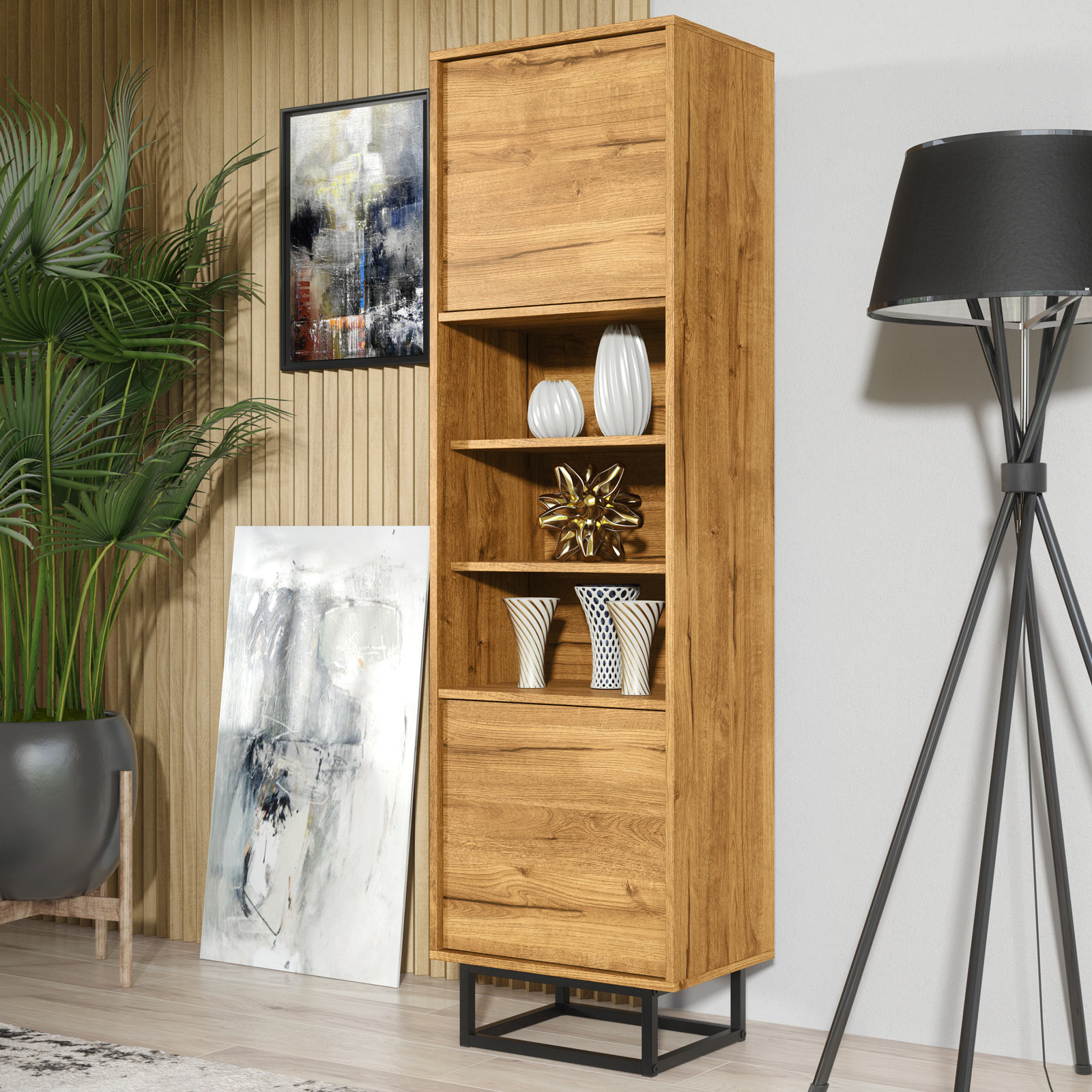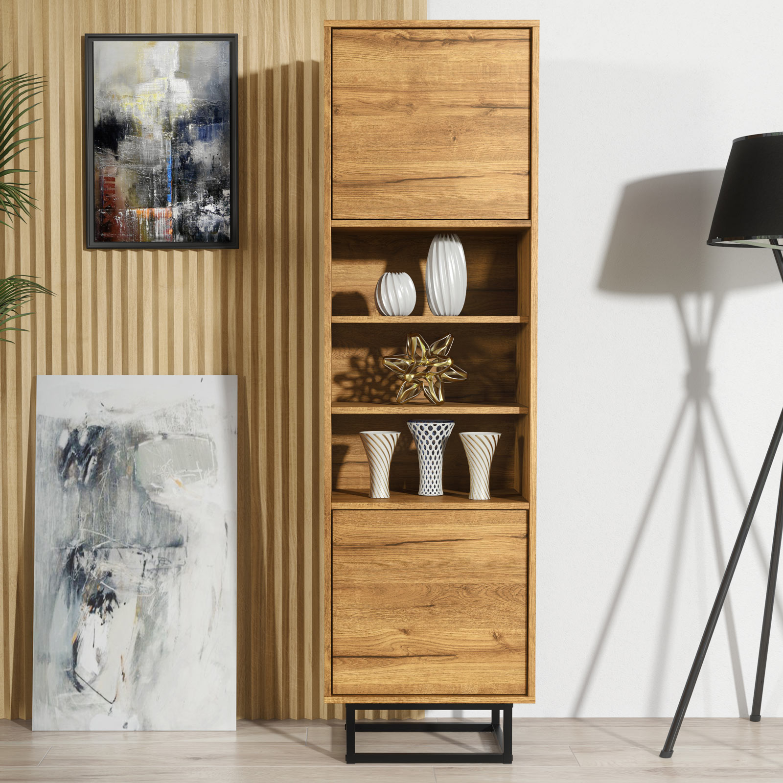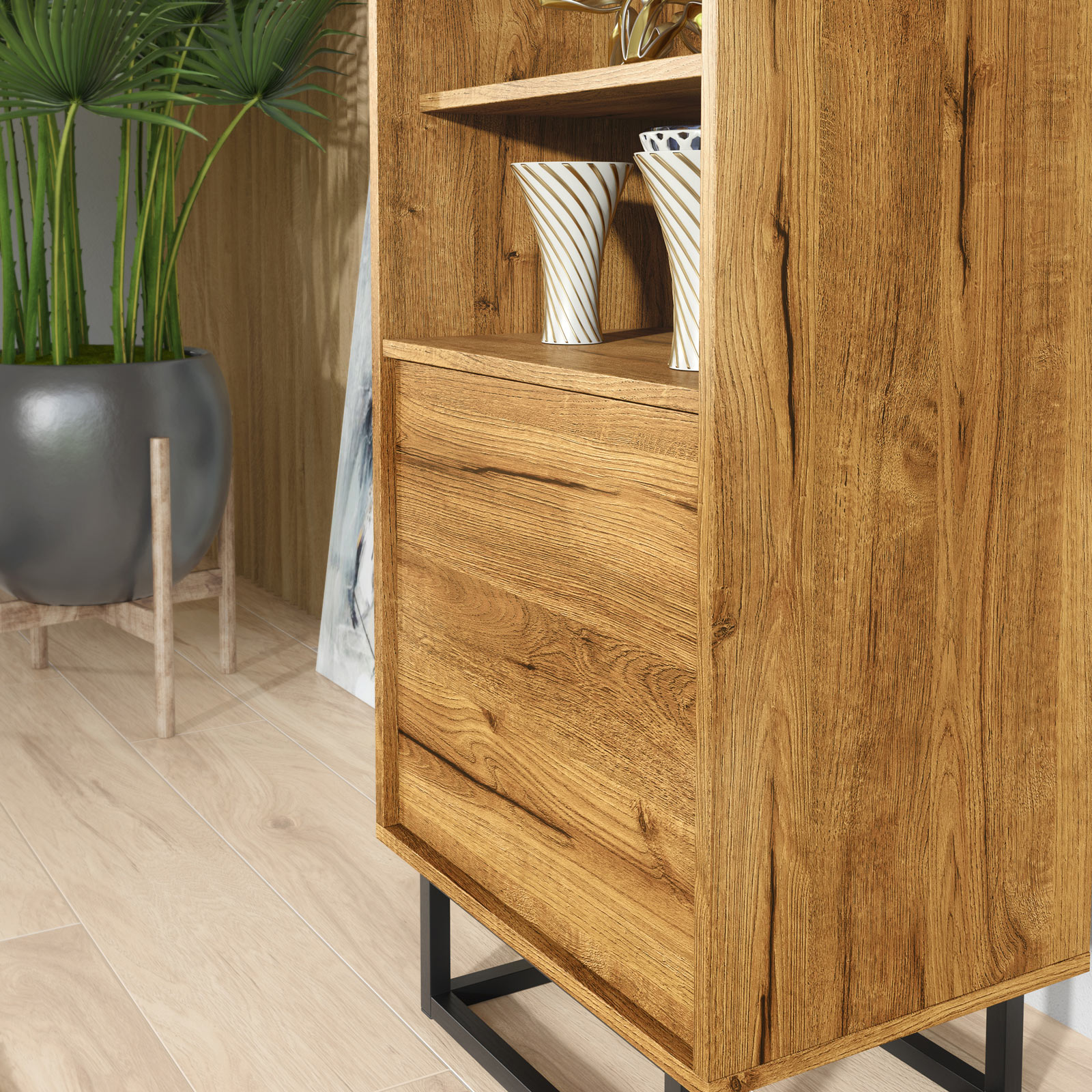 Create a bold contemporary statement with this 160cm Tall Oak Display Cabinet with Black Metal Frame, designed for modern interiors that combine natural warmth with strong architectural contrast.